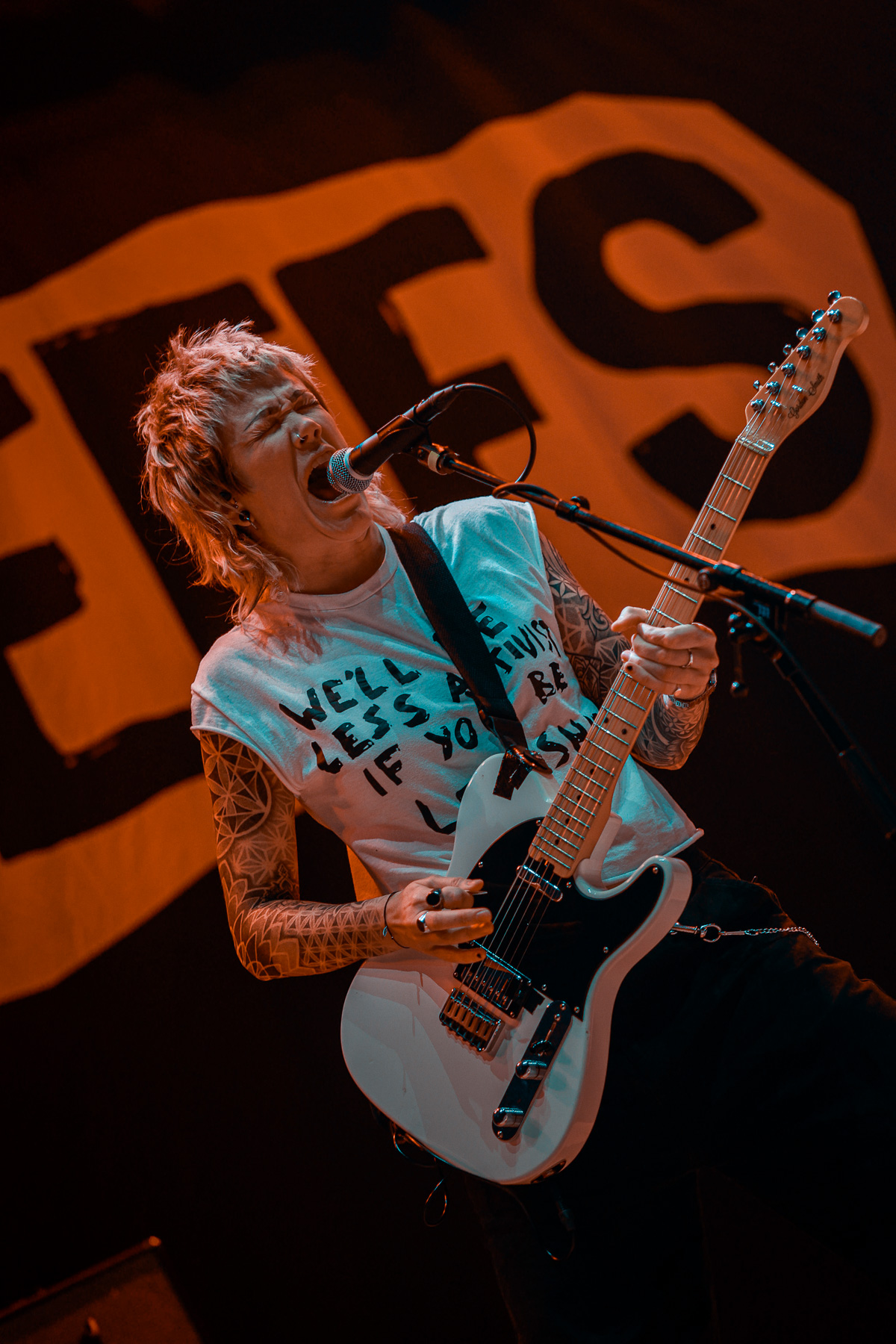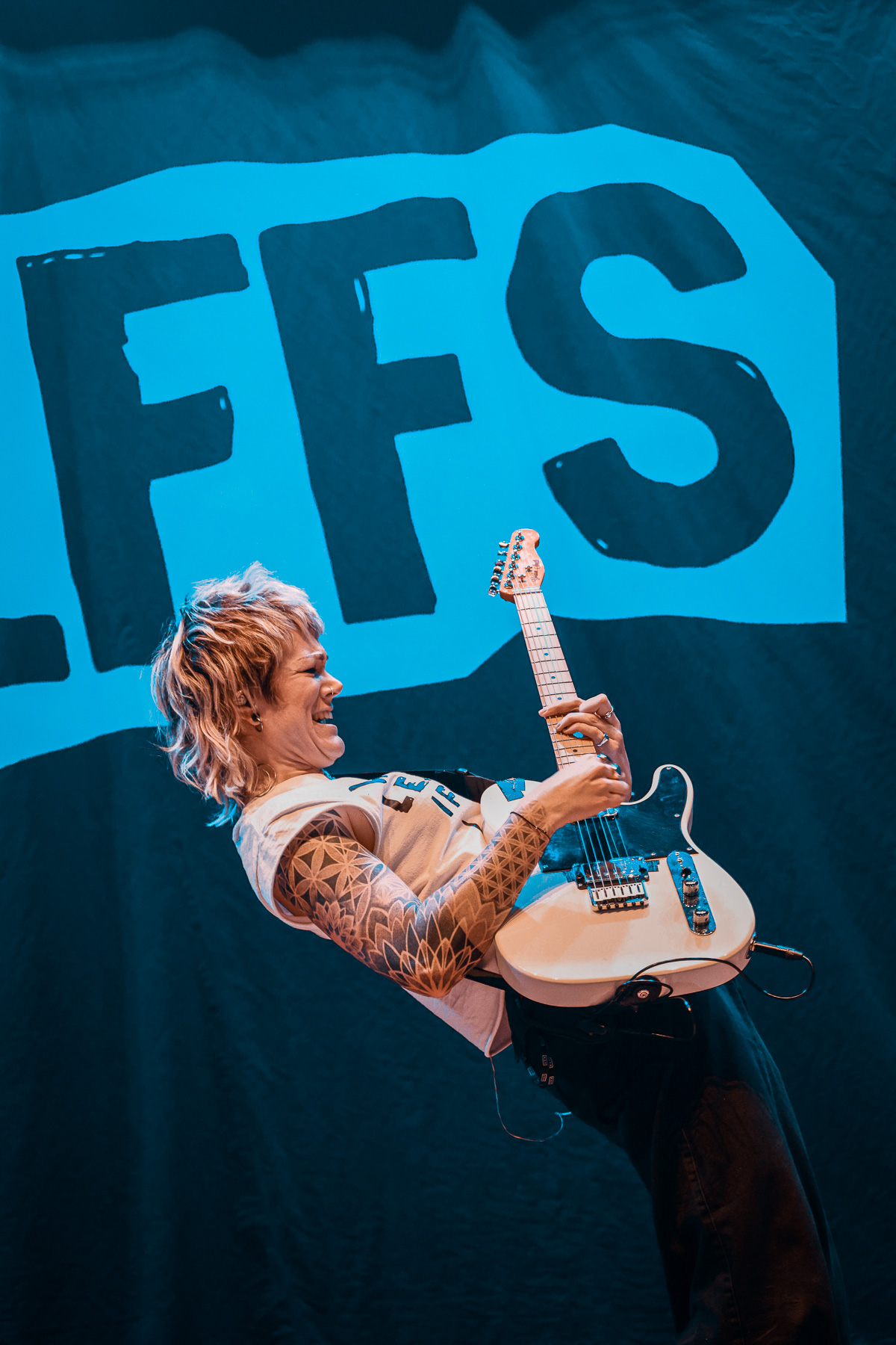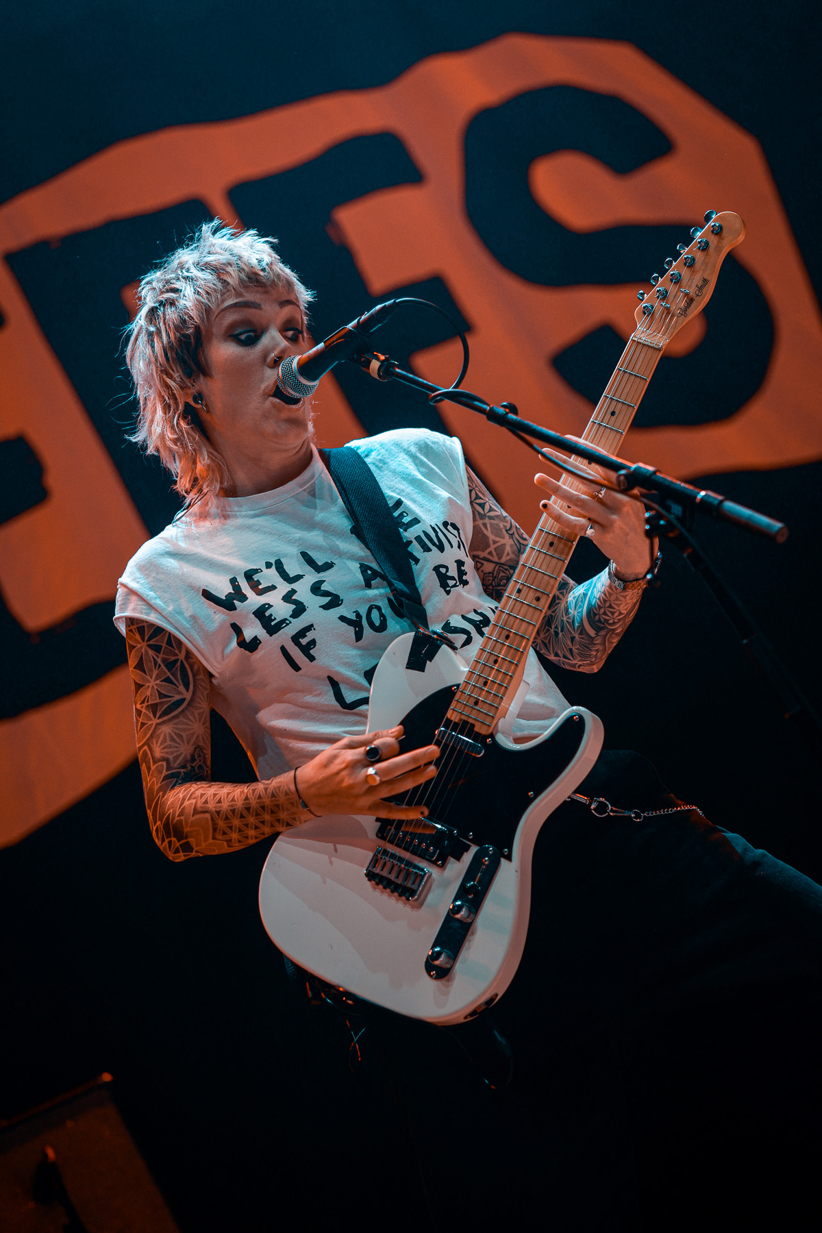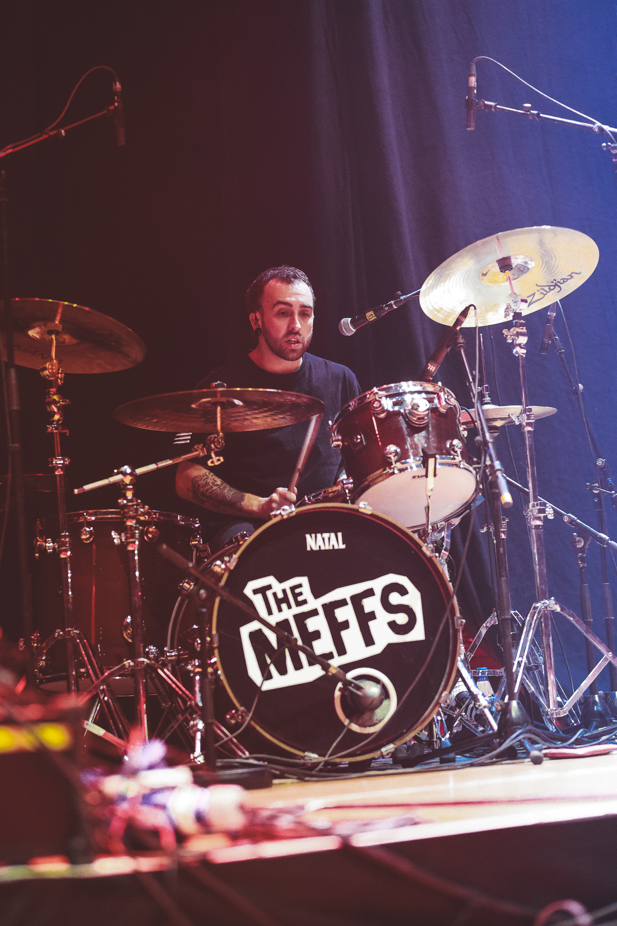 Als erste Band des Abends betraten THE MEFFS die Bühne. Das Duo aus Essex hat mich schon bei einigen Konzerten, wie z.B. beim Punk Meets People Festival überzeugt. Mit Gitarre und Schlagzeug hauen Lily Hopkins und Lewis Copsey ihren energiegeladenen Punkrock durch die Boxen. Sie lassen so manch eine mehrköpfige Band alt aussehen. Leider ging die Spielzeit viel zu schnell vorbei. Egal ob beim Mitmachteil bei Stamp it out oder beim Prodigy-Cover Breathe, sie haben die Halle ordentlich eingeheizt. Wenn ihr die Möglichkeit habt, schaut sie euch unbedingt mal an.