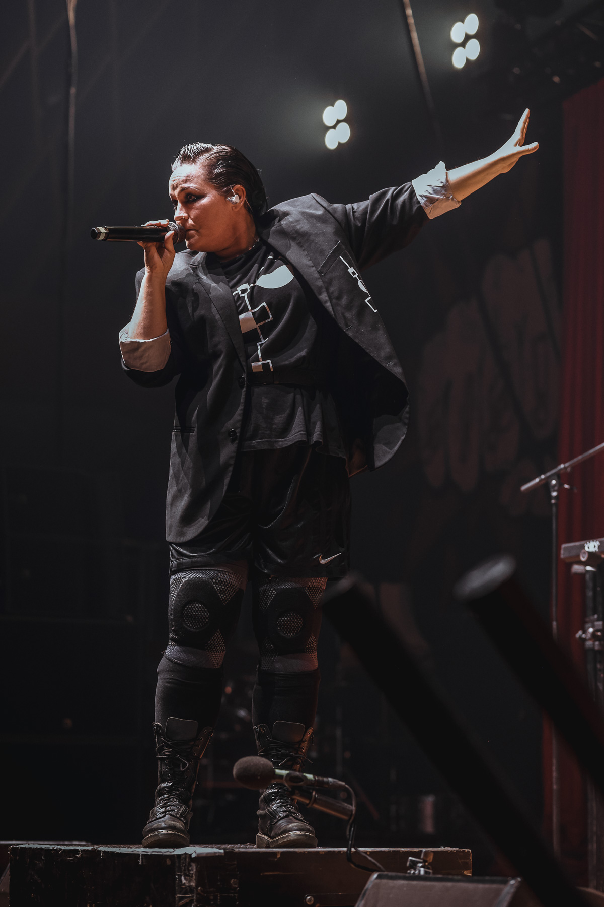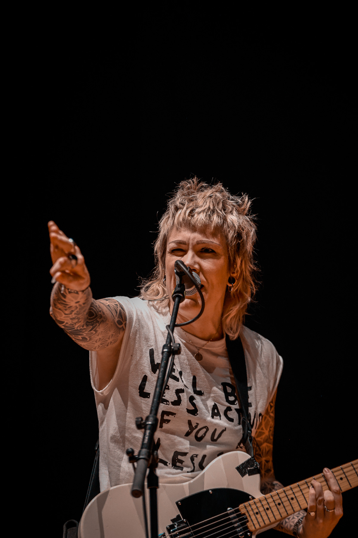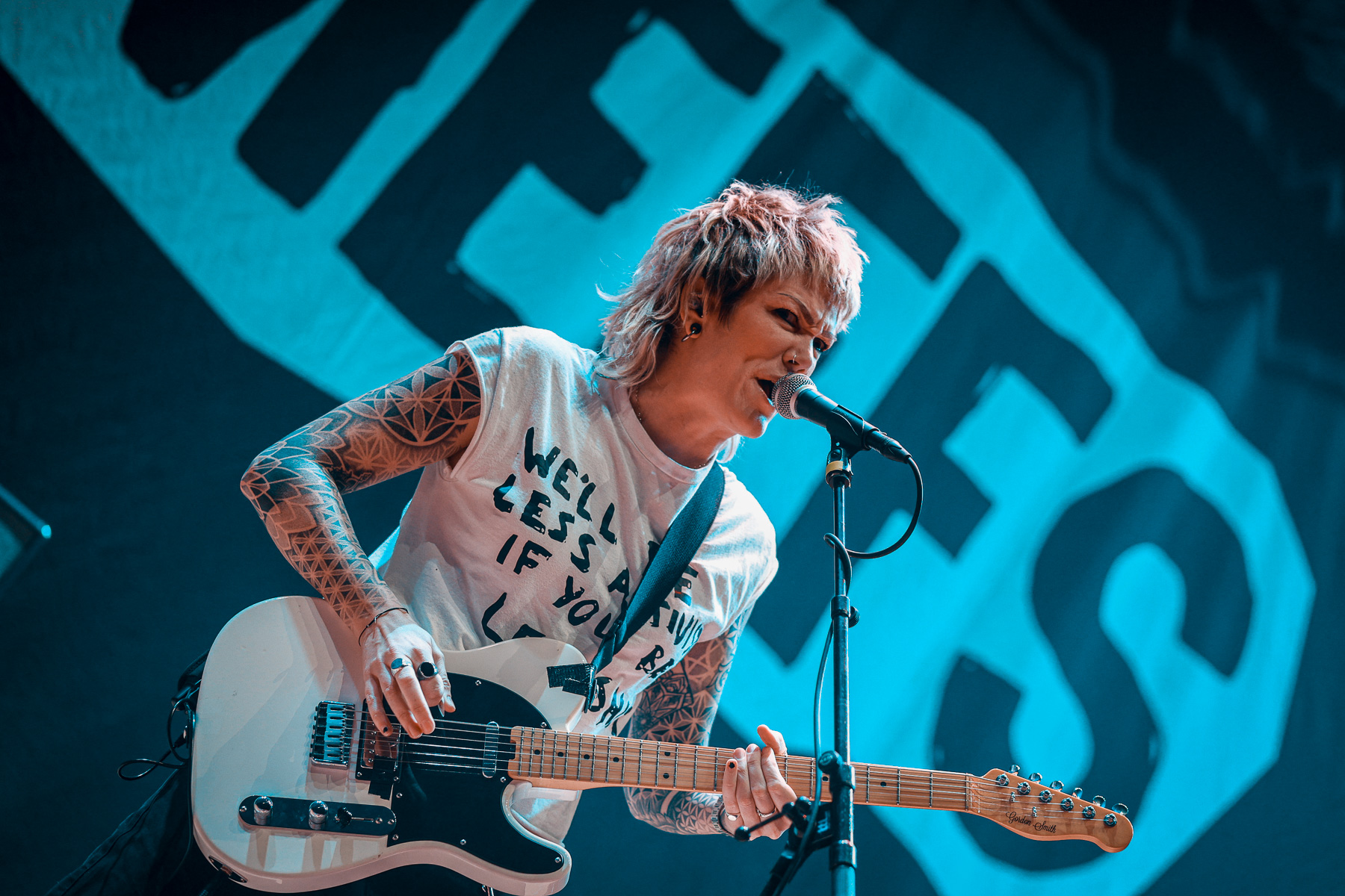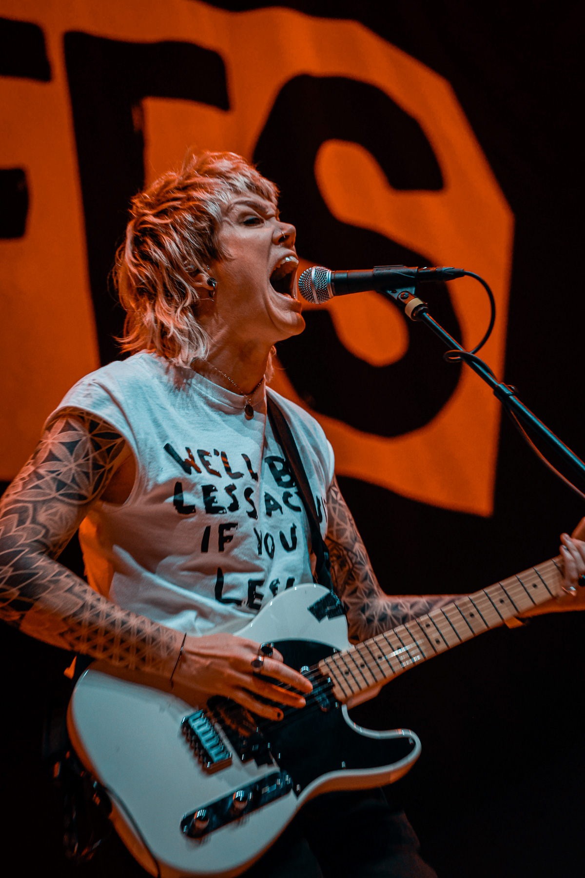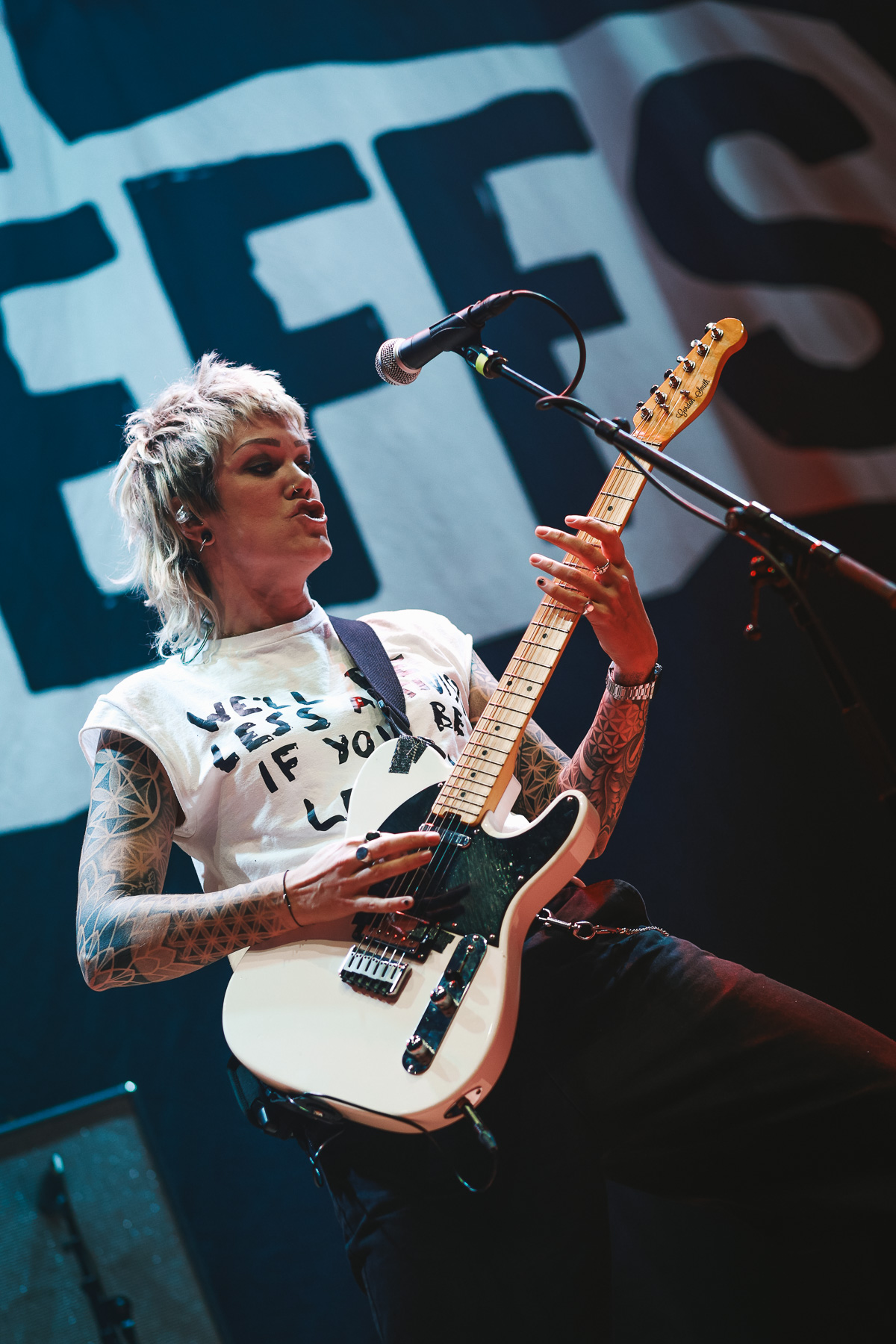 Als erste Band des Abends betraten THE MEFFS die Bühne. Das Duo aus Essex hat mich schon bei einigen Konzerten, wie z.B. beim Punk Meets People Festival überzeugt. Mit Gitarre und Schlagzeug hauen Lily Hopkins und Lewis Copsey ihren energiegeladenen Punkrock durch die Boxen. Sie lassen so manch eine mehrköpfige Band alt aussehen. Leider ging die Spielzeit viel zu schnell vorbei. Egal ob beim Mitmachteil bei Stamp it out oder beim Prodigy-Cover Breathe, sie haben die Halle ordentlich eingeheizt. Wenn ihr die Möglichkeit habt, schaut sie euch unbedingt mal an.