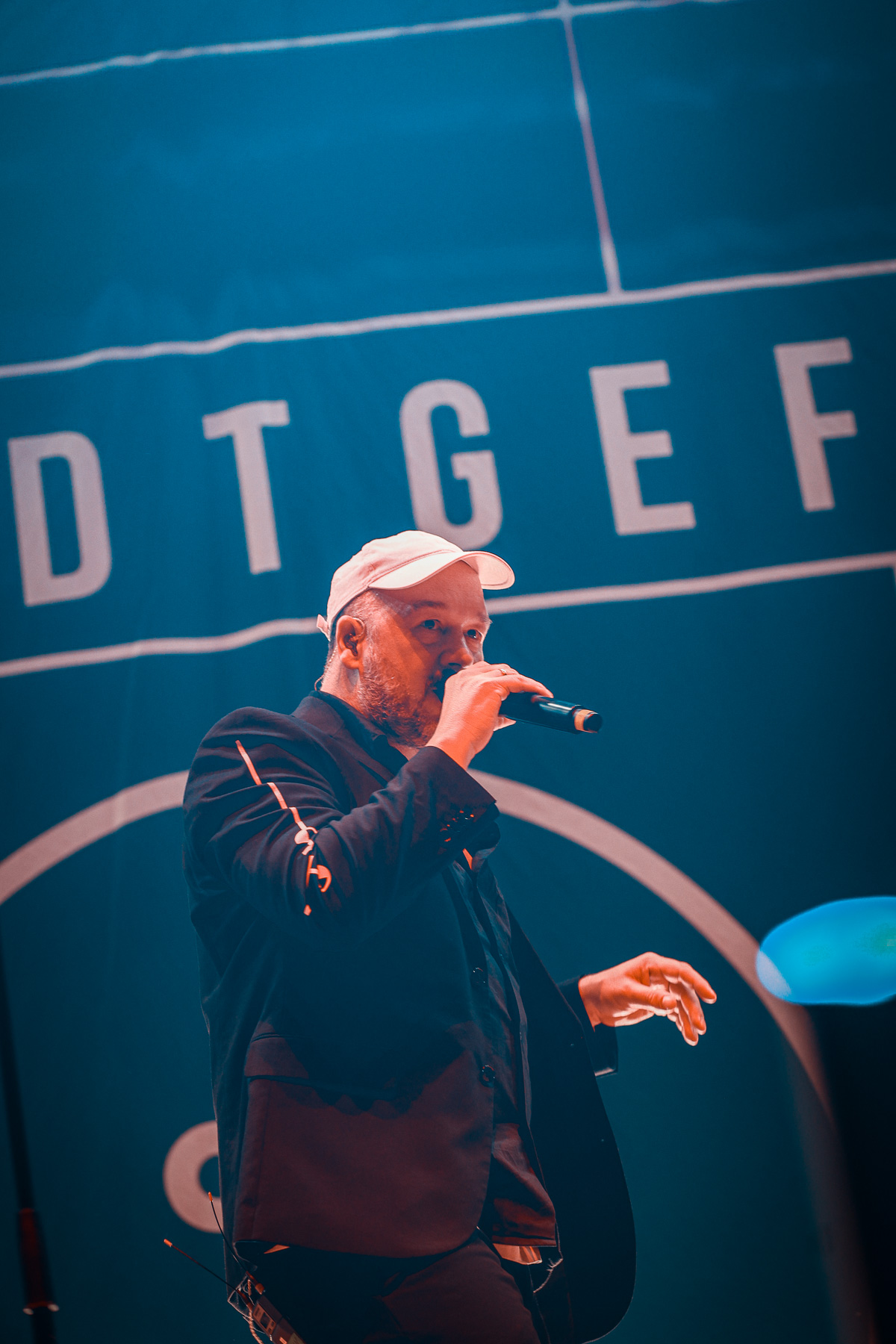 Eine weitere Umbaupause später und es folgte ein kleiner Stilbruch. Statt Gitarrenverstärker fand ein Keyboard platz auf der Bühne. Die Berliner GROSSSTADTGEFLÜSTER kündigten sich mit einem großen Banner an. Die Elektropop-Band mit leichten Elektropunk einflüssen sorgen regelmäßig für gute Stimmung auf diversen Festivals und Konzerten. Ein wenig gespannt war ich ja schon ob und wie die Band beim Donotspublikum ankommt, und was soll ich sagen: Anscheinend passt die Band und ihre Musik genau hier hin. Bei Hits wie Fickt-Euch-Allee oder Feierabend war ein Großteil der Zuschauer sehr textsicher und vor allem auch tanzfreudig. Eine mehr als würdige Einstimmung auf den Headliner des Abends.