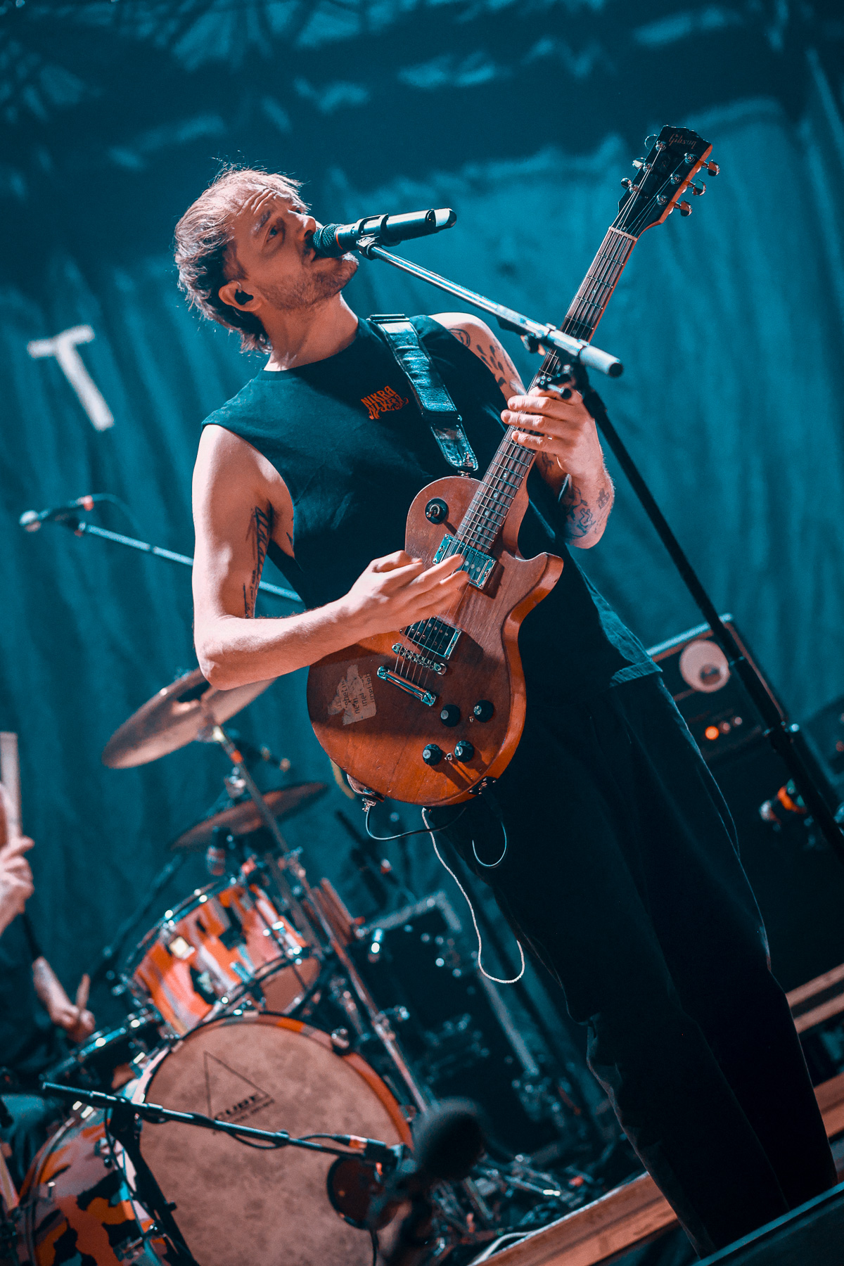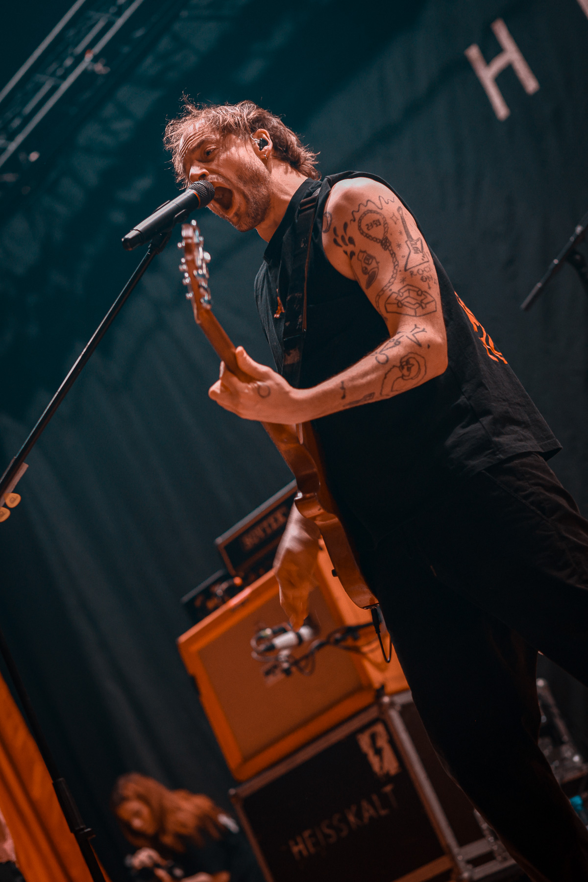 Auf der Bühne wurden anschließend die Instrumente für HEISSKALT aufgebaut. Die Band durfte ich in der Vergangenheit bereits in der Haldern Pop Bar und beim JuWi-Fest in Münster begleiten. Die vier Musiker*innen aus Baden-Württemberg stehen für einen brachialen Mix aus Indie und Postrock mit einer extra Portion Punk. Direkt ab dem ersten Lied Bürgerliche Herkunft donnerte uns der Bass und das Schlagzeug um die Ohren und spätestens bei Nicht anders gewollt war auch der letzte Zuschauer vor der Bühne nicht mehr einzufangen. Ordentliche Bewegung und Applaus begleiten die letzten Strophen des Sets und so manch eine Schweißperle musste erst einmal von der Stirn gewischt und an der Theke aufgefüllt werden.