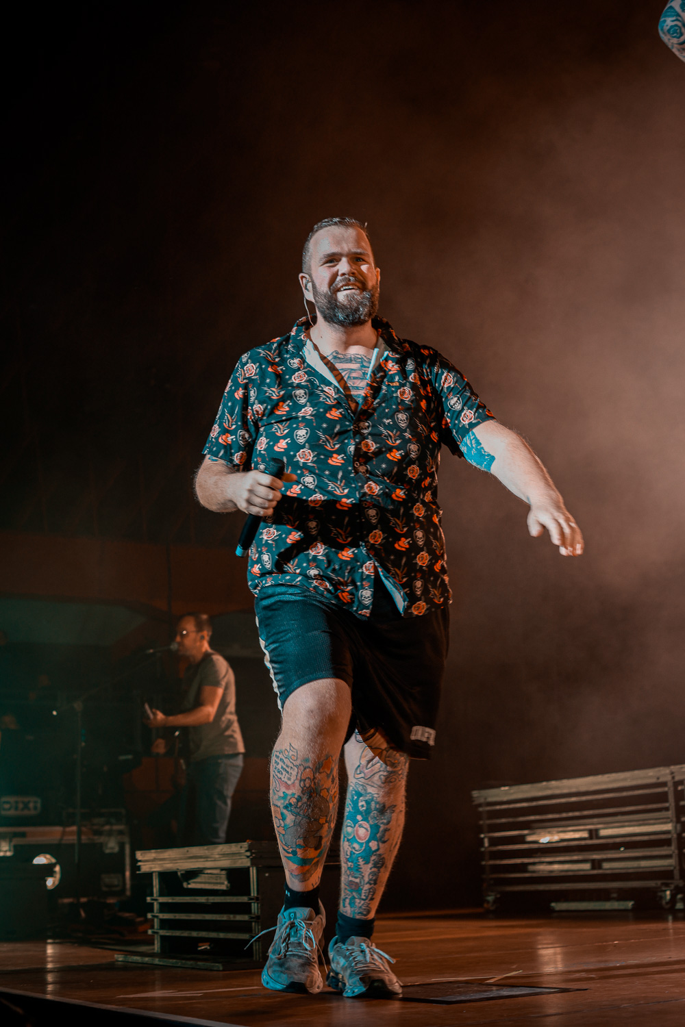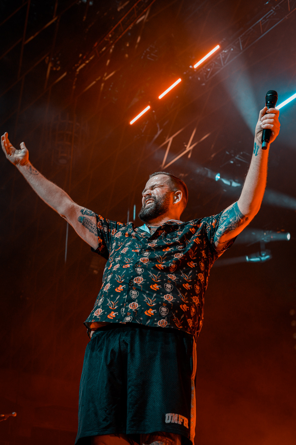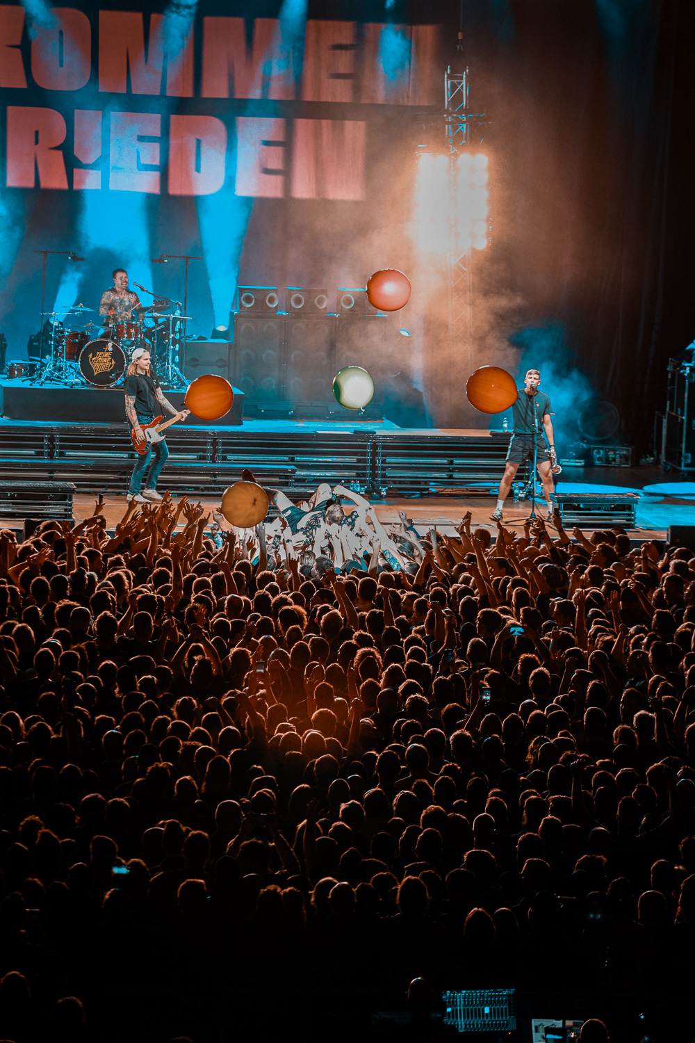 Das Licht erlosch und nach den Anheizer-Songs von OXO86 und den Toten Hosen startete das Lied „Wir kommen in Frieden“ in einer Pianoversion. Der Vorhang fiel und die Band legte brachial los. Mit „Wir kommen in Frieden“, „Zurück in unserer Stadt“ und „Alles Auf Rausch“ legten sie direkt mit Hits los und die Security bekam es vom ersten Akkord an mit den Stagedivern zu tun. An dieser Stalle noch einmal ein großen Kompliment an die Security, die stets wachsam und hilfsbereit war.