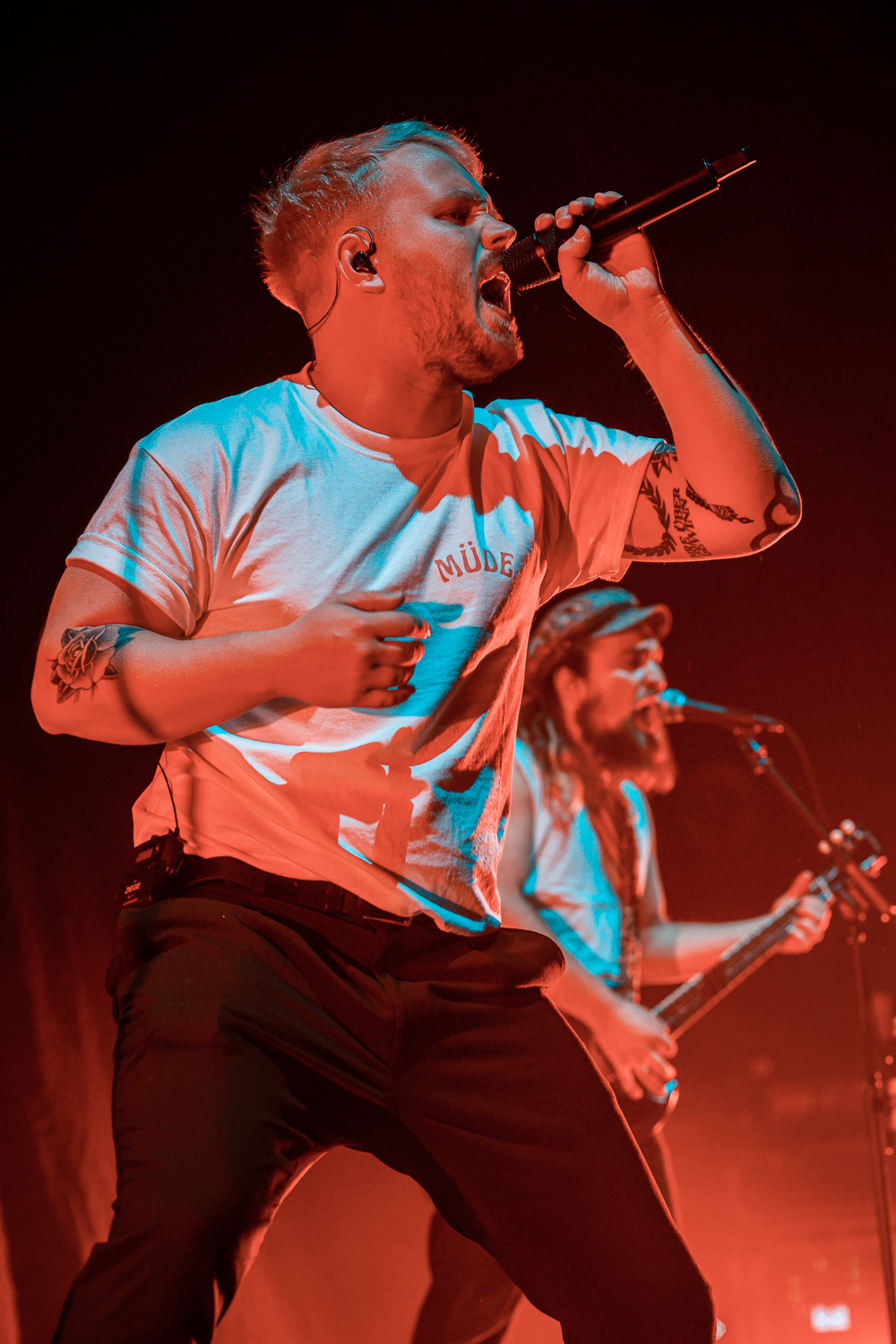 20 Uhr, das Licht geht aus und das Intro der Supportband Focus. wurde abgespielt. Direkt ab der ersten Minute heizte die fünfköpfige Band aus Riesa dem Publikum ein. In den letzten Jahren hat sich Focus. eine beachtliche Fanschar erspielt. Sie geben alles auf der Bühne und das überträgt sich auf die Zuhörer. Egal ob bei den Liedern „AU“, „Kein Limit“ oder „Für immer 21“, das Publikum dankte der Band mit ordentlich Bewegung und Circle Pits. Sie machen auf jeden Fall Spaß, die sollte man sich nicht entgehen lassen, wenn man die Möglichkeit bekommt sie einmal live zu sehen.