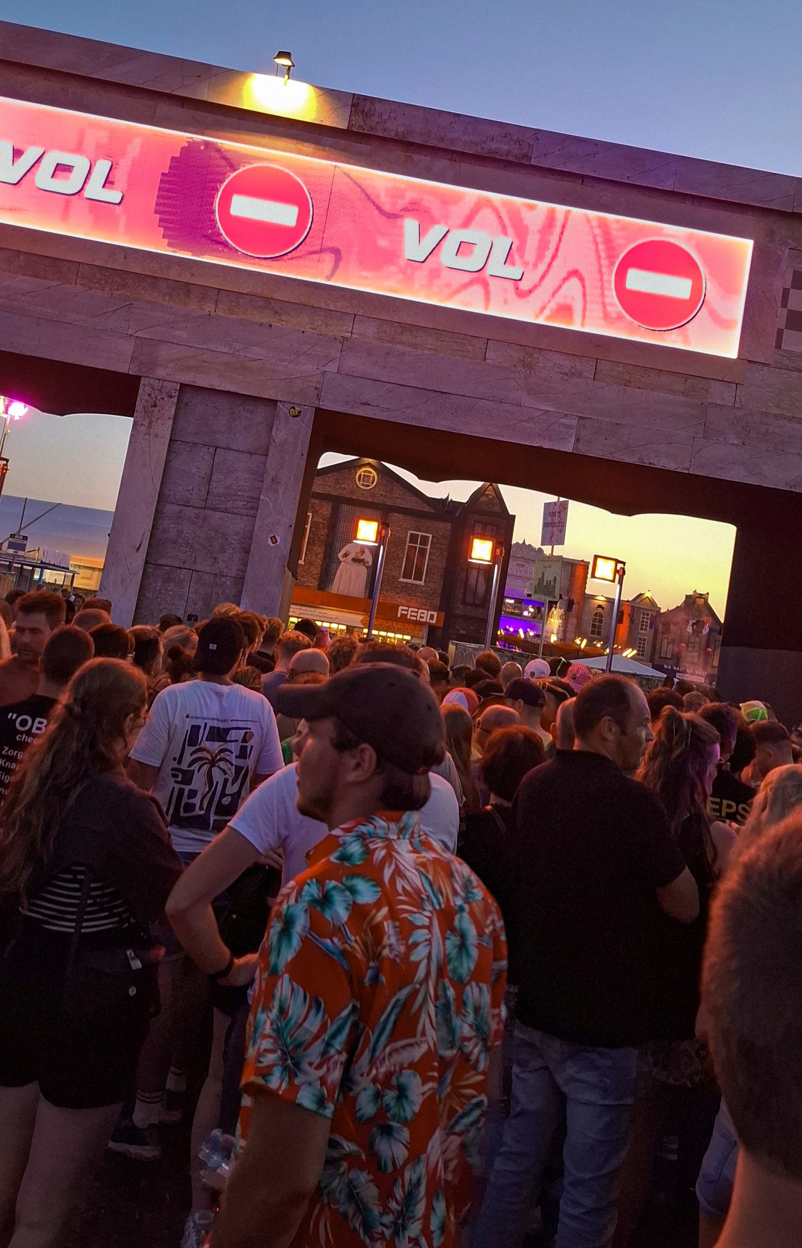 Mir bleibt nicht viel Zeit, ich möchte noch einmal rüber zum Stadsplein und zum Café Harder. Ich bin wohl nicht der einzige, der so gedacht hat. Schlange vorm Eingang zum Stadsplein und die Botschaft „Vol“. Ich stelle mich brav in die Schlange und warte ein wenig ab. Irgendwann springt die Anzeige um und ich komme rein. Wirklich gut gefüllt hier drin. Durchkämpfen bis zur hinteren Ecke und rein in den Café Harder. Hier drin ist es überraschenderweise leerer und die DJs auf der Bühne bringen die Leute, die hier sind zum tanzen und singen. Wenn jemand weiß wie man Party macht, dann die Niederländer.