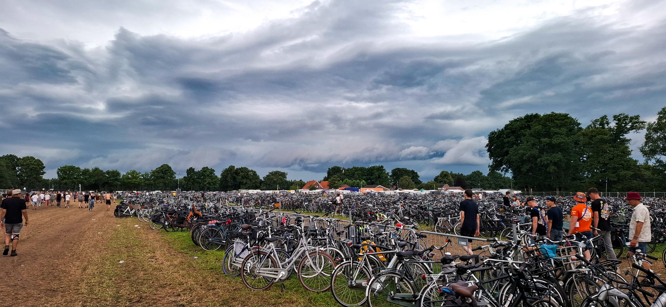 Wir haben ein wenig Zeit, bis die nächste Band, die wir fotografieren wollen, auftritt und entscheiden uns zurück zum Auto zu gehen um uns ein wenig hinzulegen und etwas zu trinken. Vorbei an dem riesigen Fahrradparkplatz, wo ich wieder eine Gruppe Besucher fotografieren darf/soll, sind wir schnell am Auto. Wir packen die Decke aus und gehen die Fotos schon einmal durch zum bearbeiten. So eine Pause bei der Hitze tut richtig gut und macht fit für den Rest des Tages.