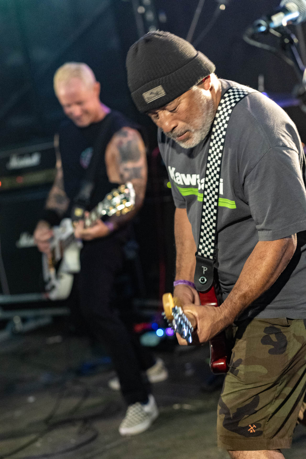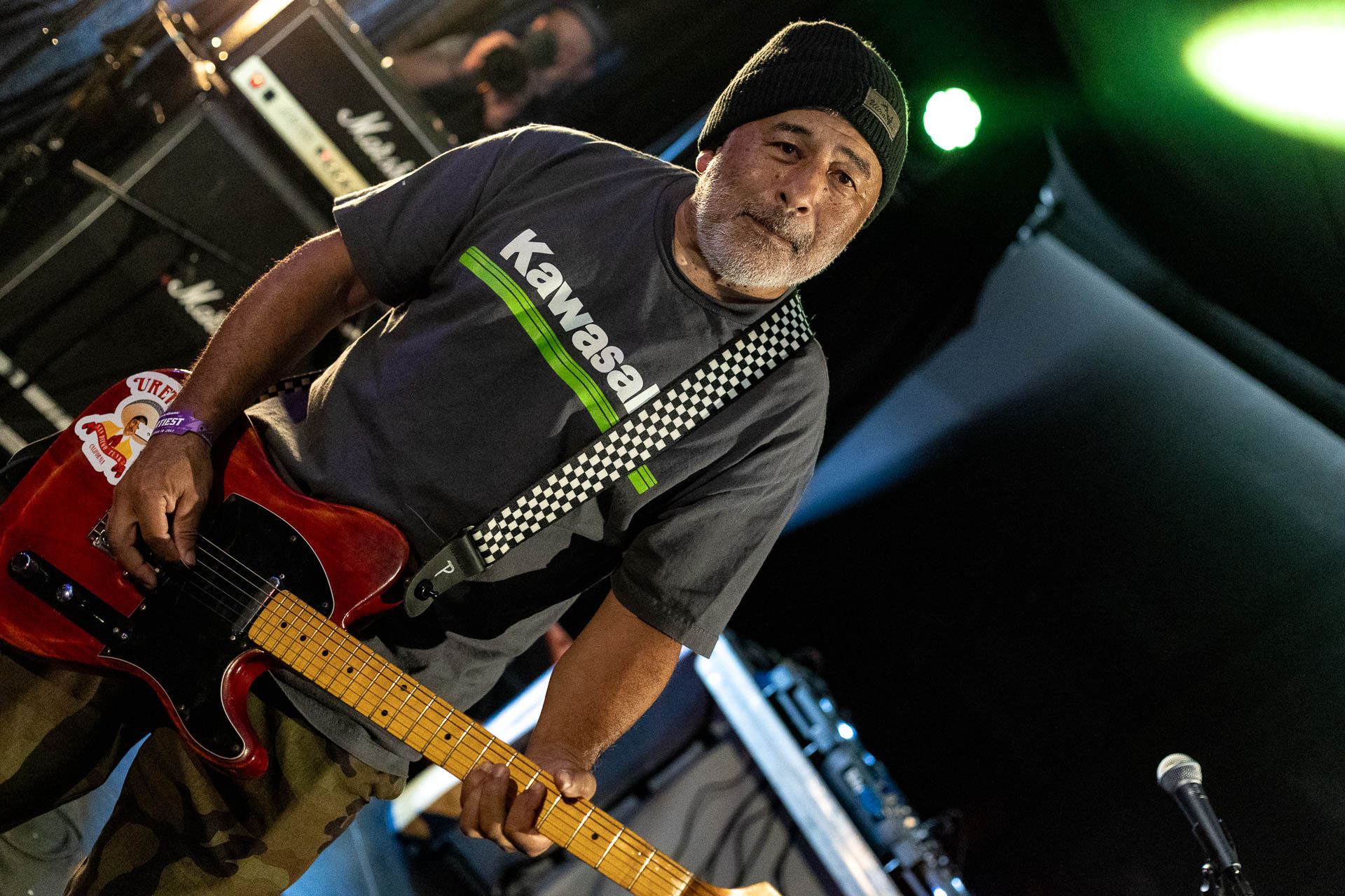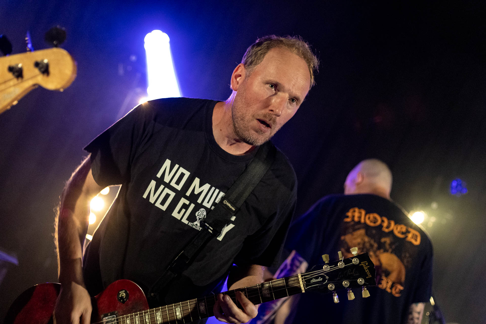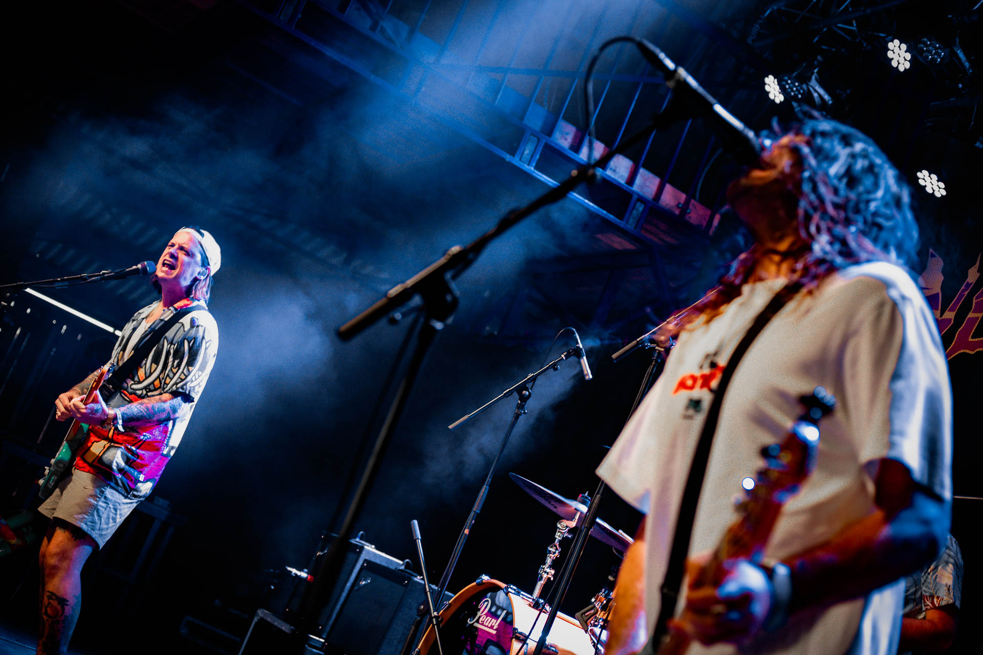 Die erste Band, die ich heute fotografiere tritt, wie kann es auch anders sein, im Café Harder auf. Urethane aus San Diego passen mit ihren Pop-Punk wie die Faust auf´s Auge in diesen Schuppen. Die Band gründete sich während der Pandemie und wenn ein Musiker der Band auf das Zwarte Cross Festival passt, dann ist es auf jeden Fall Gitarrist Steve Caballero. Die Skateboard-Legende hat sich bestimmt auch den ein oder anderen Stunt angeschaut. Im Noaberhood, der Hip-Hop Ecke bei diesem Festival, steht ja schließlich auch eine Halfpipe.