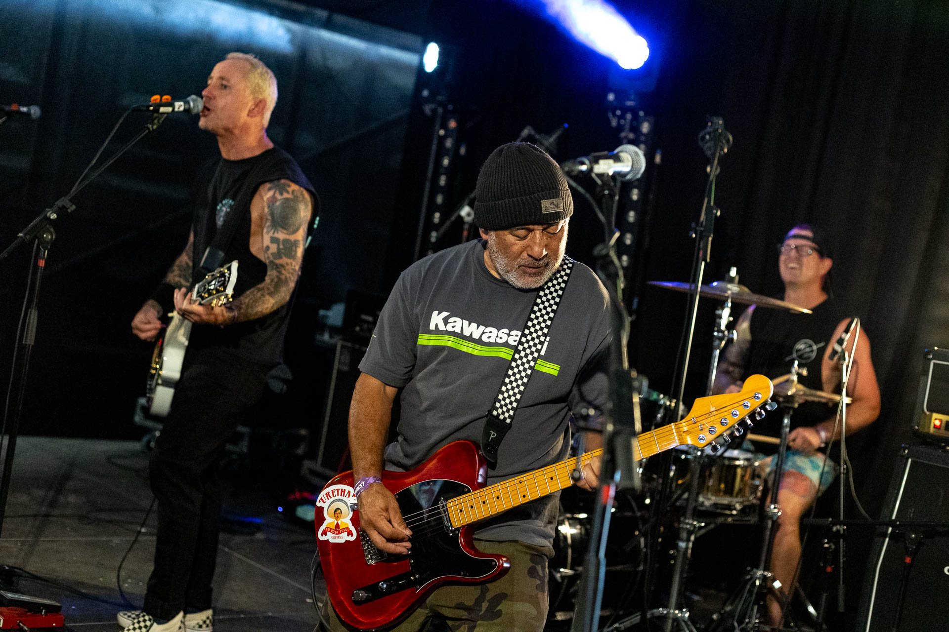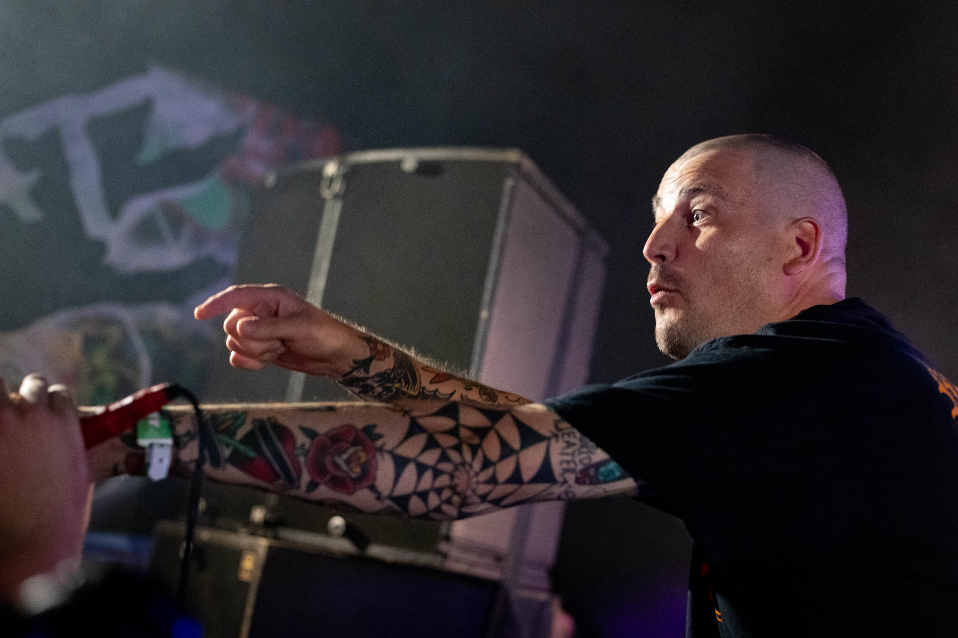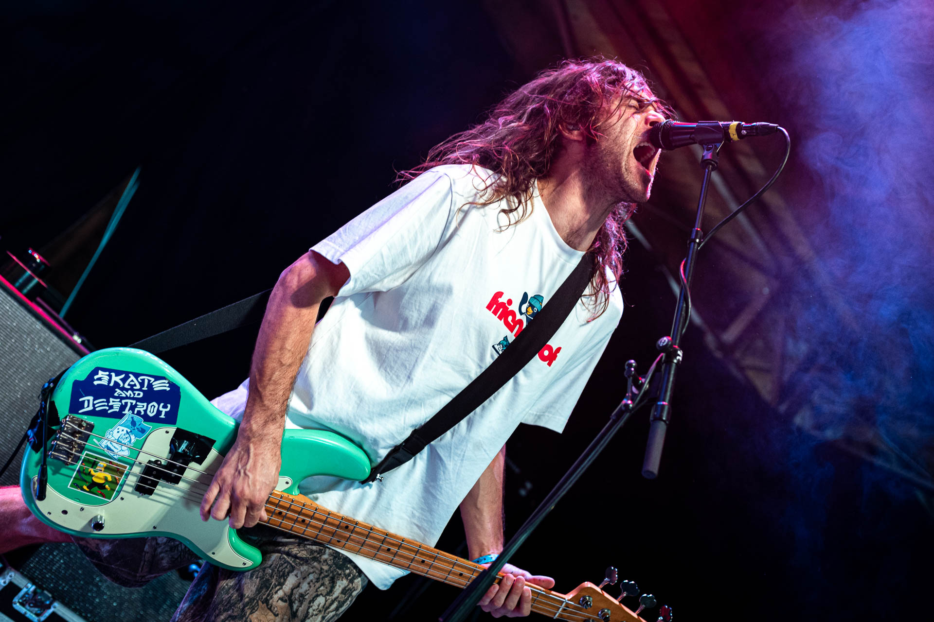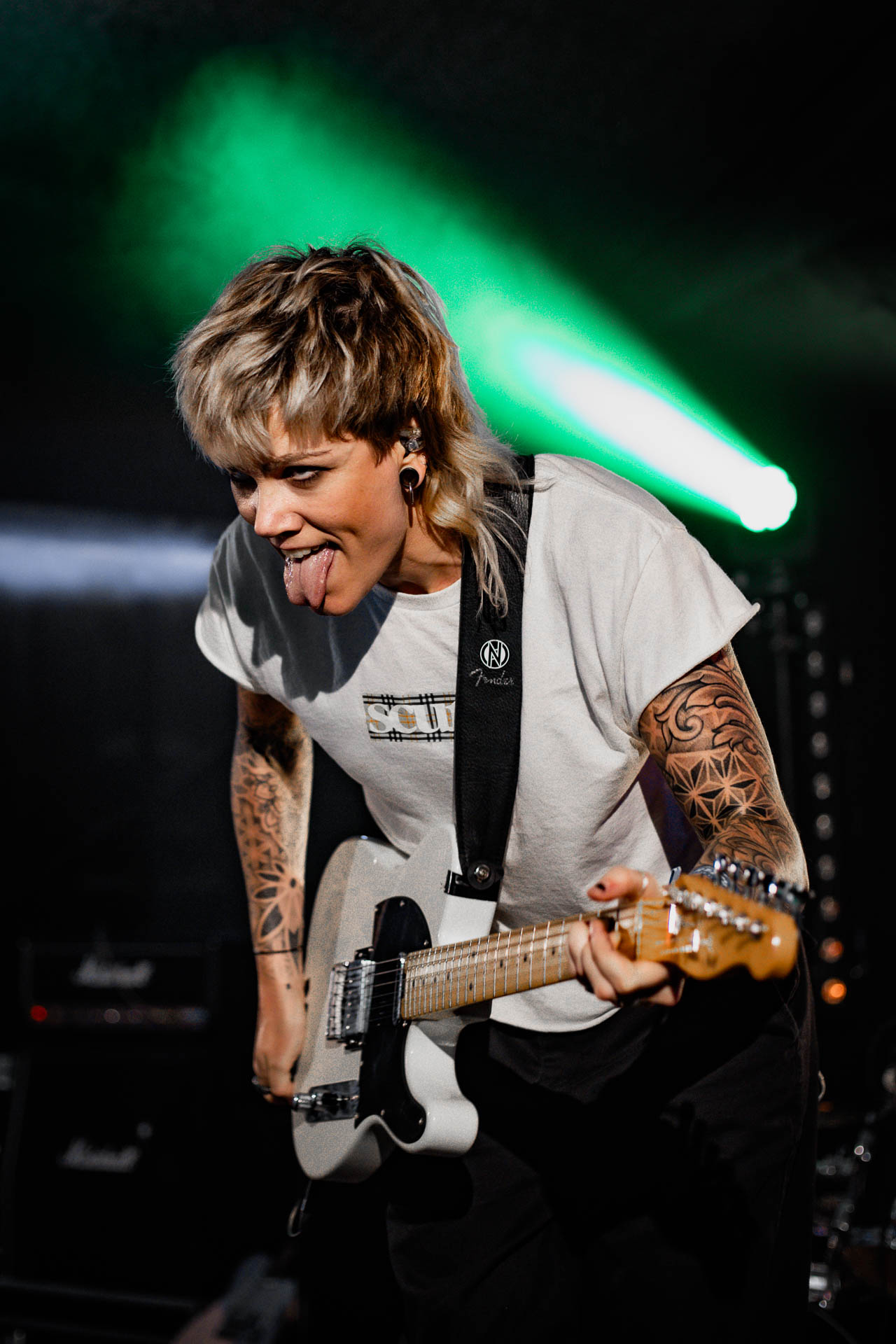 Die erste Band, die ich heute fotografiere tritt, wie kann es auch anders sein, im Café Harder auf. Urethane aus San Diego passen mit ihren Pop-Punk wie die Faust auf´s Auge in diesen Schuppen. Die Band gründete sich während der Pandemie und wenn ein Musiker der Band auf das Zwarte Cross Festival passt, dann ist es auf jeden Fall Gitarrist Steve Caballero. Die Skateboard-Legende hat sich bestimmt auch den ein oder anderen Stunt angeschaut. Im Noaberhood, der Hip-Hop Ecke bei diesem Festival, steht ja schließlich auch eine Halfpipe.