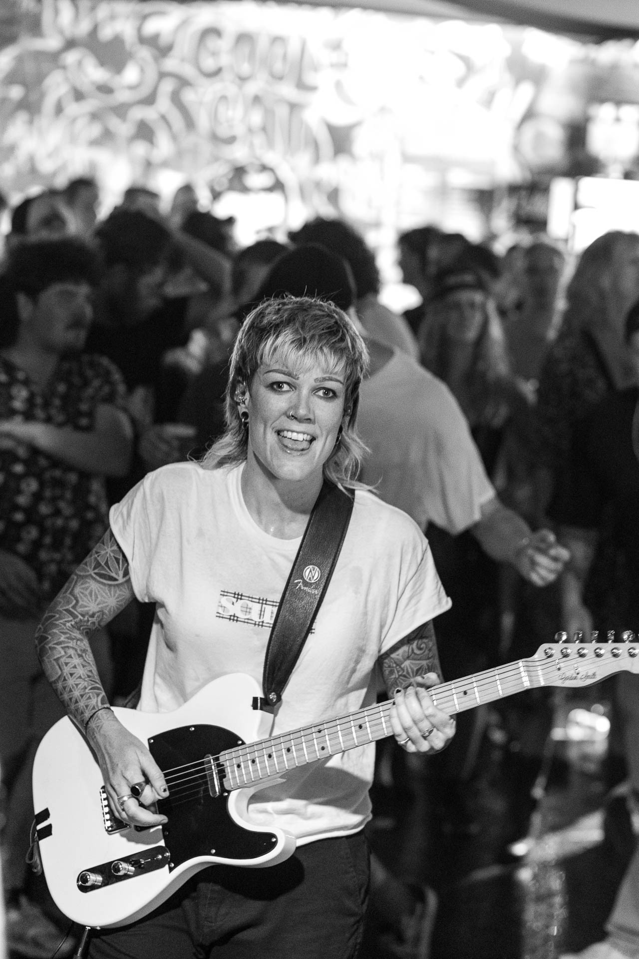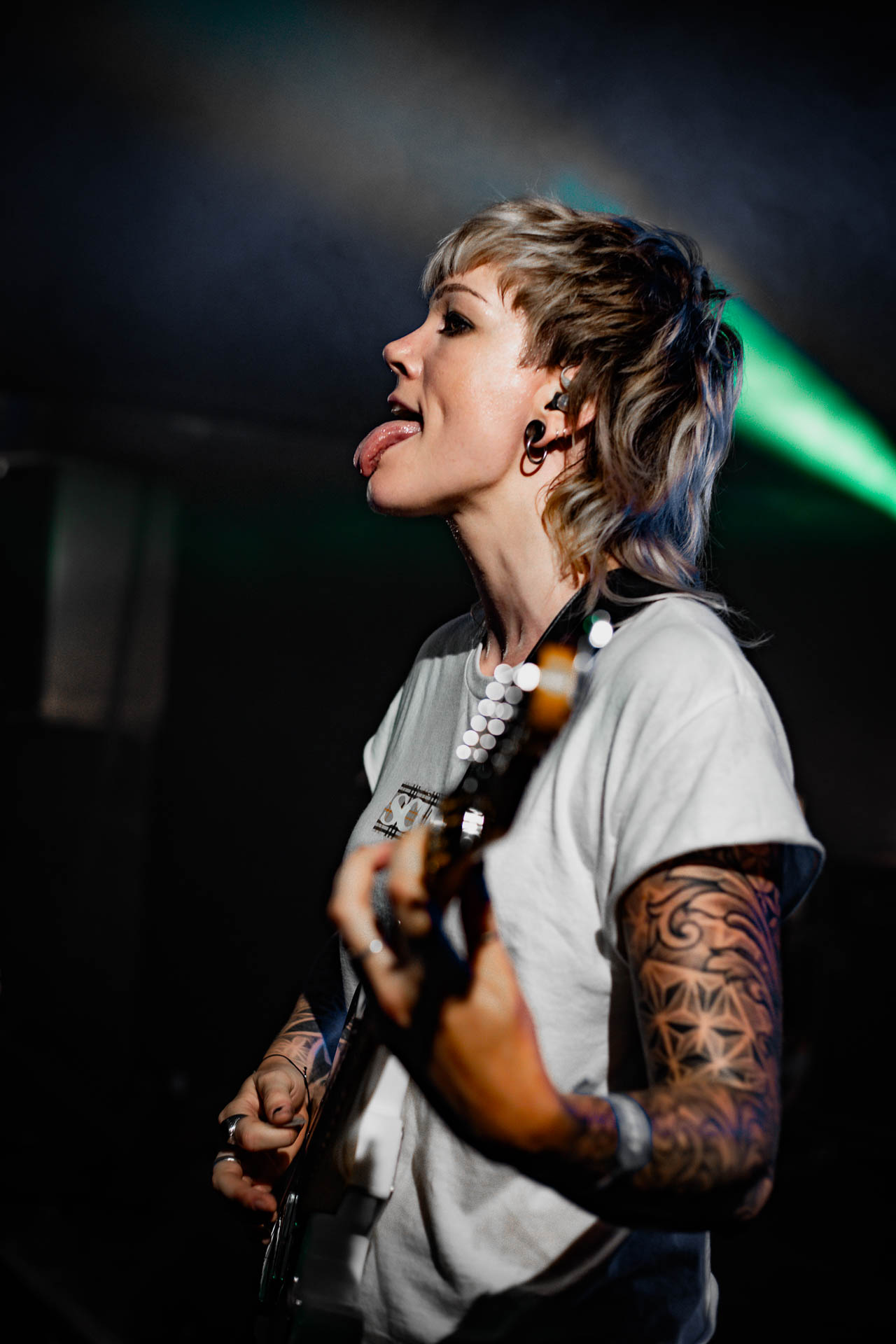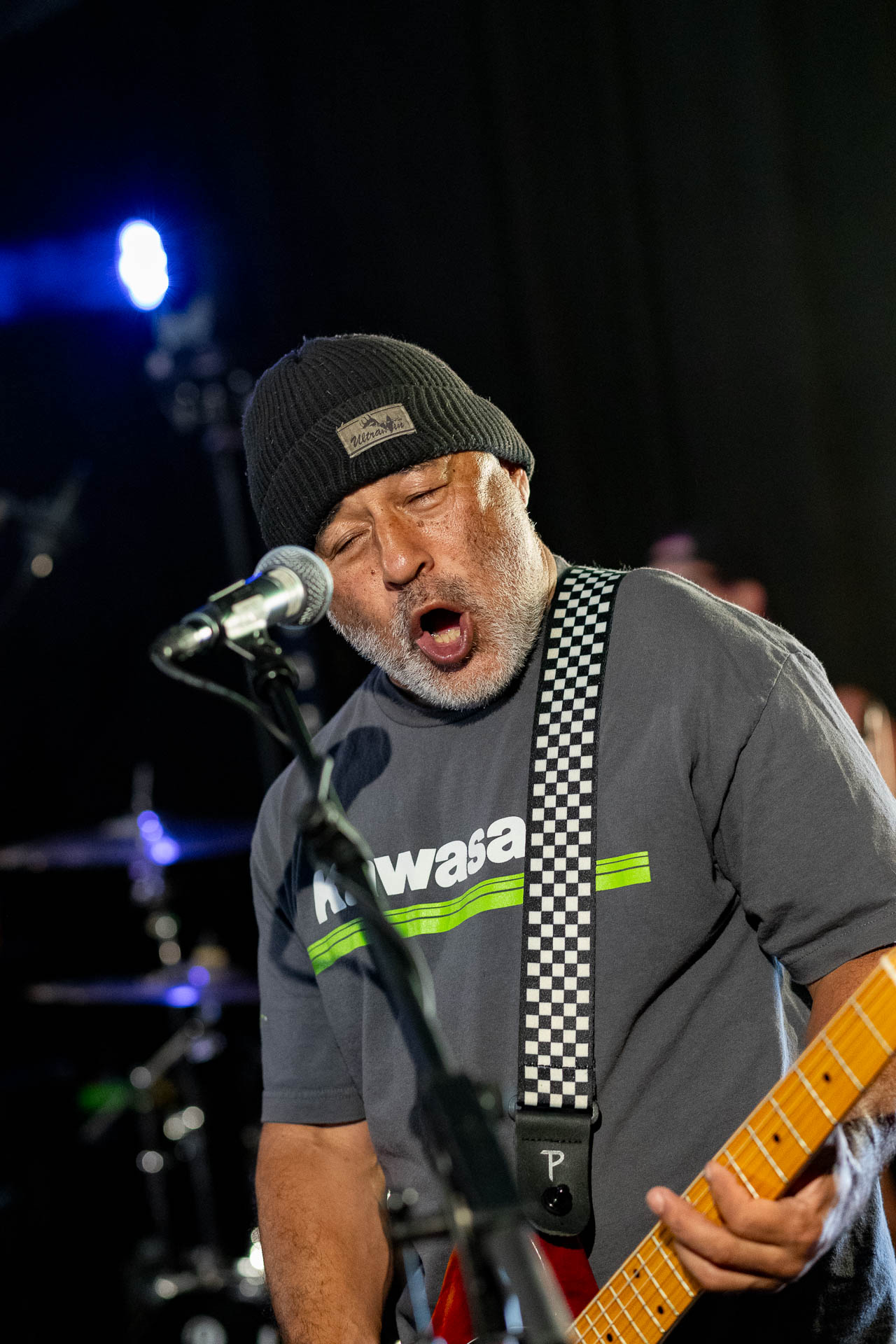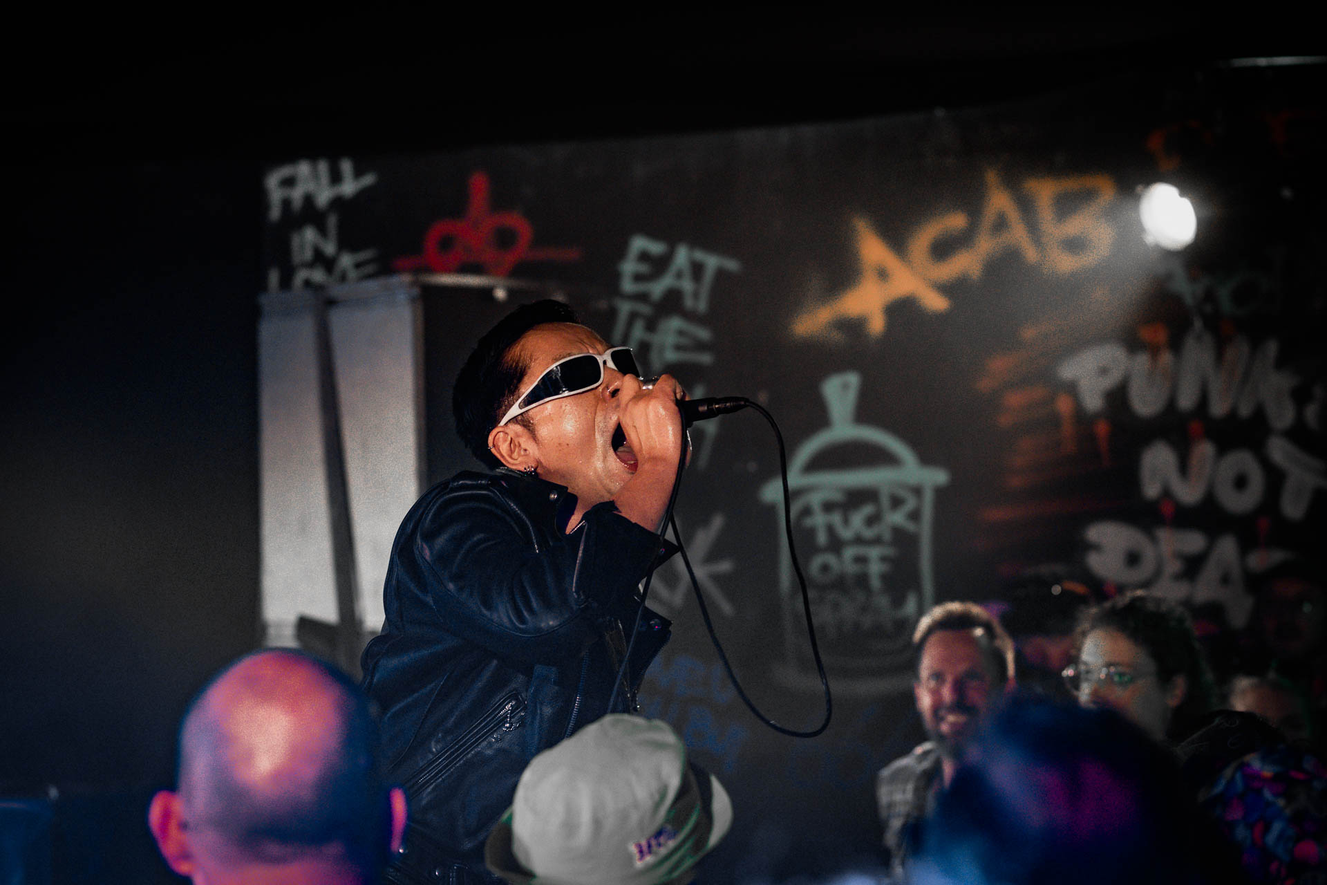 Die erste Band, die ich heute fotografiere tritt, wie kann es auch anders sein, im Café Harder auf. Urethane aus San Diego passen mit ihren Pop-Punk wie die Faust auf´s Auge in diesen Schuppen. Die Band gründete sich während der Pandemie und wenn ein Musiker der Band auf das Zwarte Cross Festival passt, dann ist es auf jeden Fall Gitarrist Steve Caballero. Die Skateboard-Legende hat sich bestimmt auch den ein oder anderen Stunt angeschaut. Im Noaberhood, der Hip-Hop Ecke bei diesem Festival, steht ja schließlich auch eine Halfpipe.