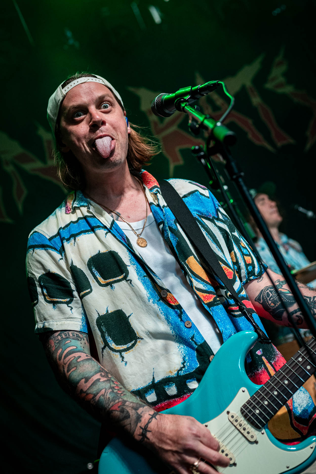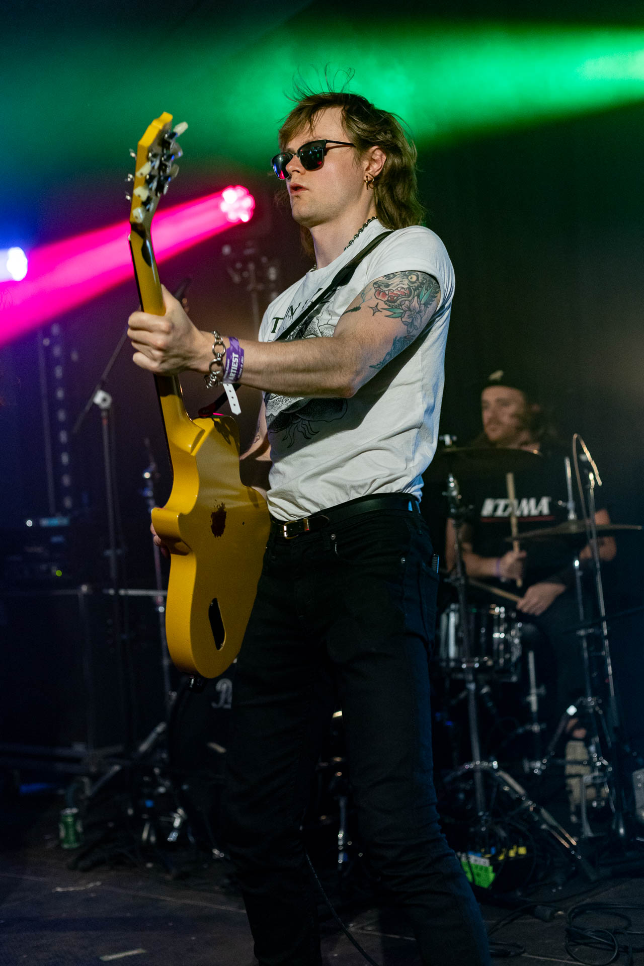 Durch die Verzögerungen an der Crossbahn verpasse ich The Young Ones im Café Harder. Stattdessen schaue ich mir im Roadhouse ein wenig Paceshifters an. Ihr Sound erinnert an eine Mischung aus Soundgarden und Nirvana. Ich mache mich aber weiter zurück zum Café Harder. Purer Rock´N´Roll aus den Staaten steht auf dem Programm. Killer Kin scheinen das zu leben was sie spielen. So viel Energie und Bewegung auf der Bühne. Die vierköpfige Band weiß das Publikum zu packen und Sänger Mattie Lea ist zwischendurch auch schon mal auf Schultern von Besuchern oder liegend im Moshpit zu finden.