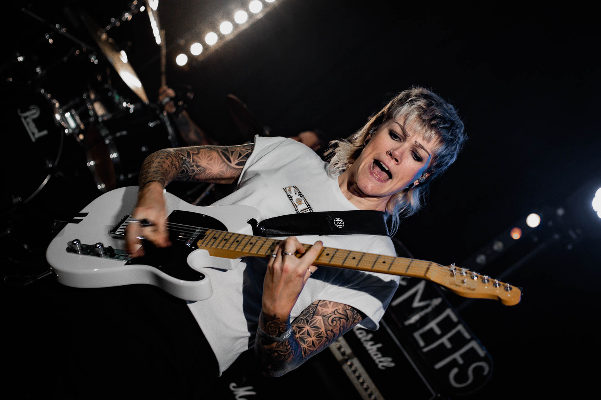 Im hintersten Eck ist das Café Harder zu finden. The Meffs befinden sich gerade noch beim Soundcheck als ich ankomme. Das dritte Mal in diesem Jahr habe die sehr sypathischen Briten aus Essex vor der Kamera. Beim Punk Meets People Festival in Haldern und beim Ruhrpott Rodeo in Hünxe hat mich das Duo derart von ihrer Spielfreude und Energie überzeugt, dass ich mich sehr auf diesen Auftritt freue. Und ich werde nicht enttäuscht. Pure musikalische Gewalt, die schnell auf´s Publikum überspringt. Das Zelt ist am Beben und kocht über als Gitarristin und Sängerin Lily Hopkins ins Publikum kommt und den Circle Pit dirigiert. Was für eine Show, die viel zu schnell vorbei geht.