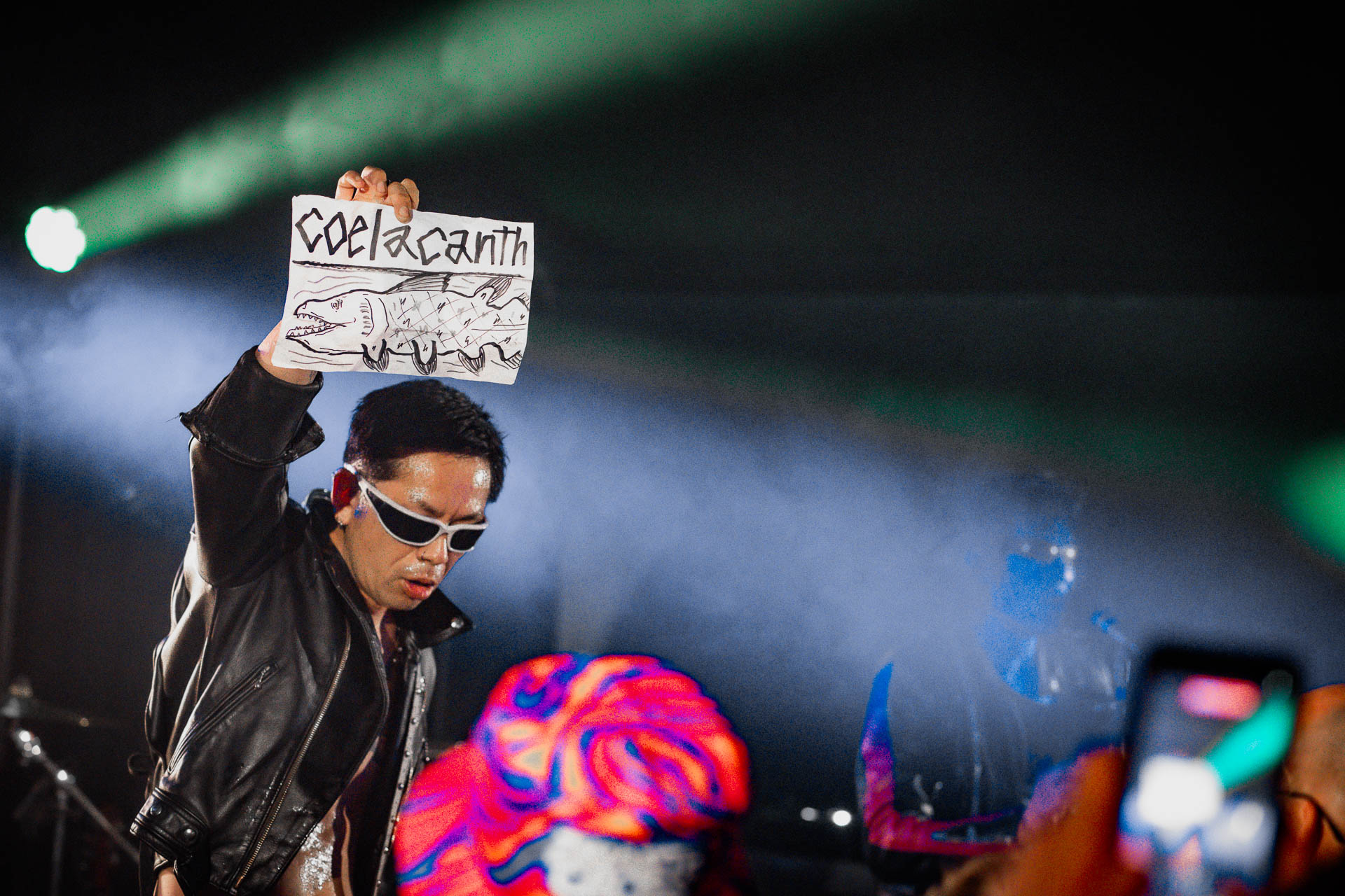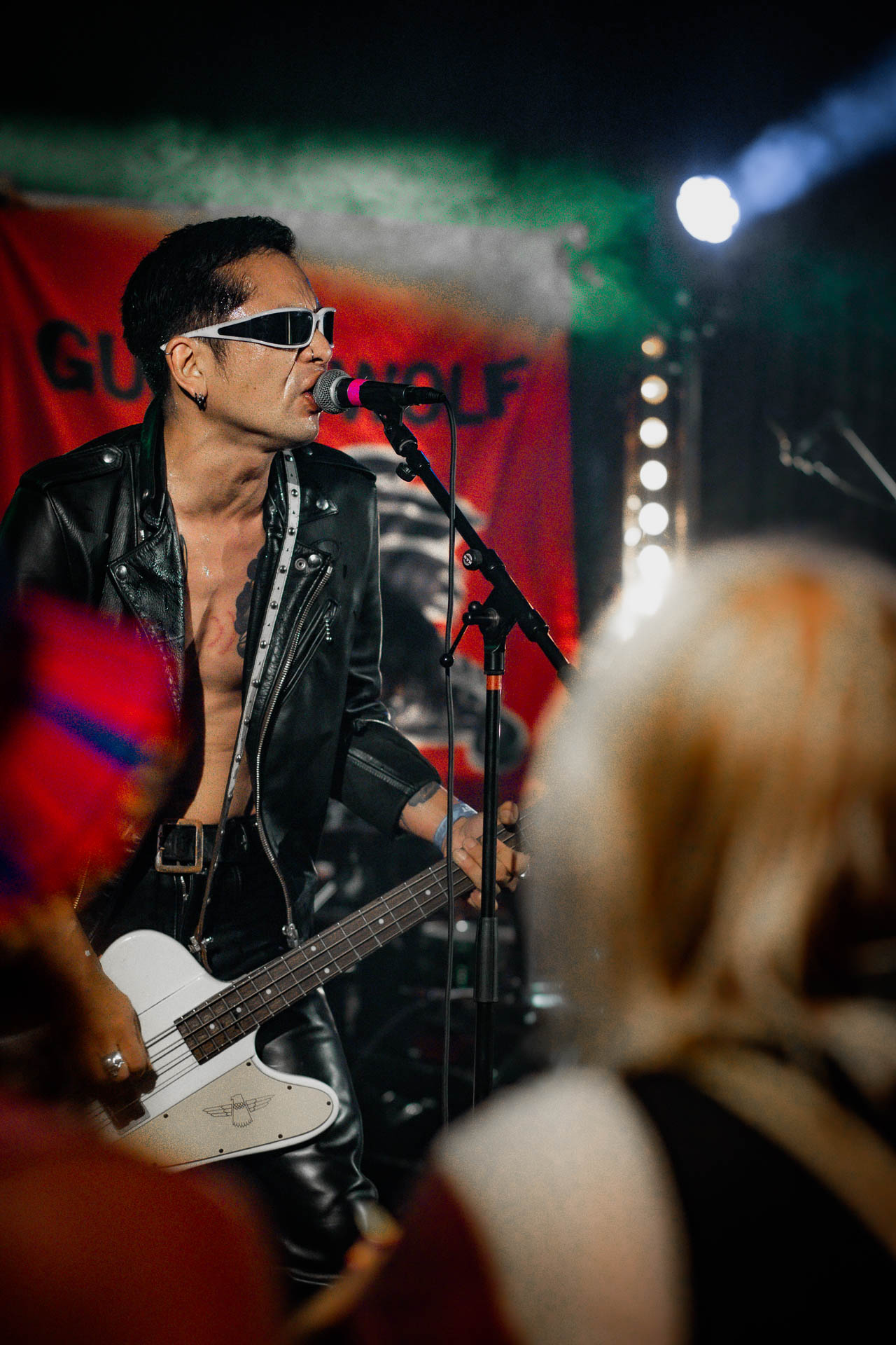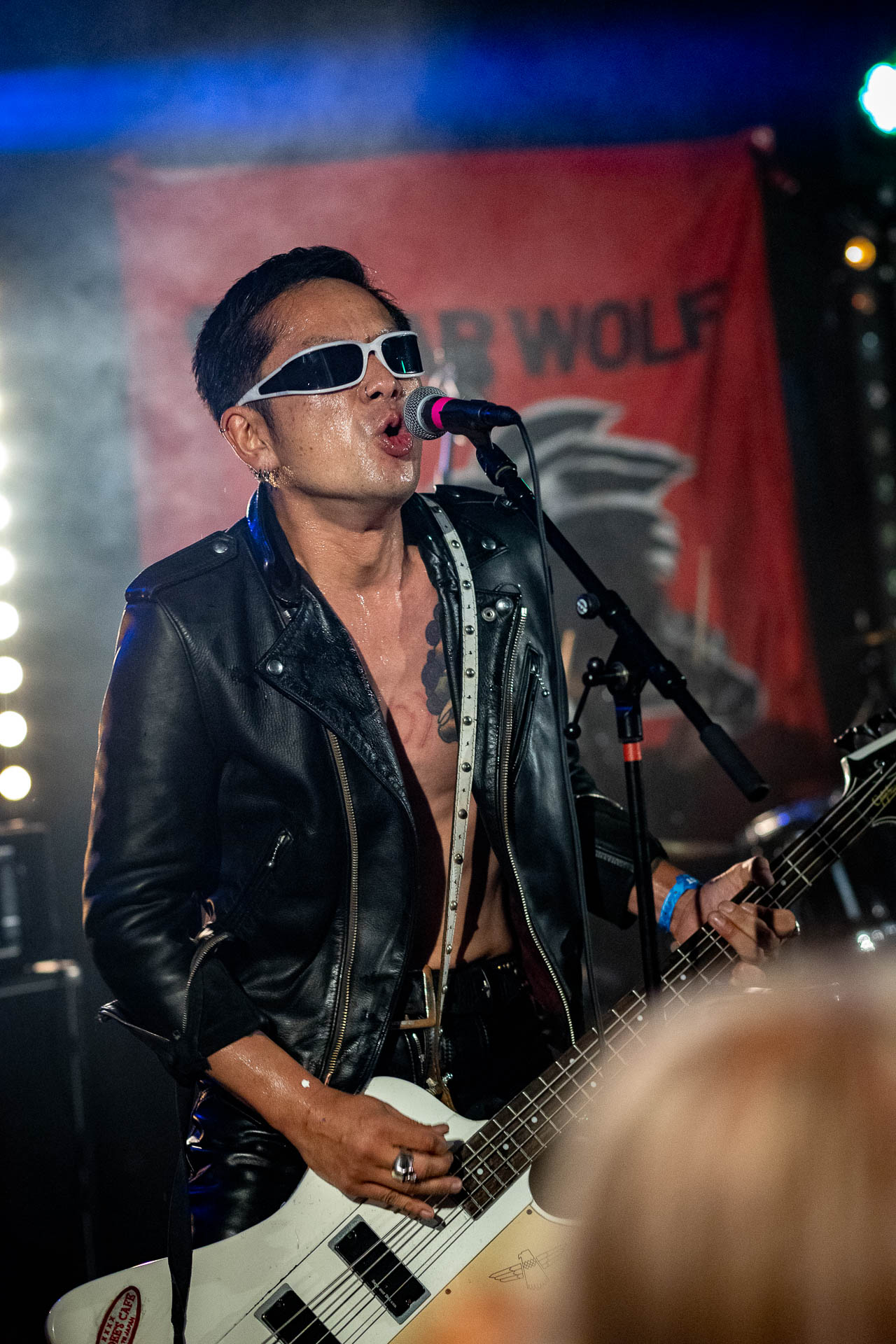 Bevor ich mich ein wenig im Pressezelt hinsetze, schaue ich noch flux im Café Harder vorbei. Dort spielt gleich die japanische Rock´N´Roll Band Guitar Wolf. Ich kenne sie bisher nicht, habe aber gehört, dass man sie sich auf jeden Fall anschauen soll, wenn man die Möglichkeit hat. Und was ist das für eine verrückte und chaotische Band? Purer Rock´N´Roll und das interagieren zwischen Band und Publikum ist ein Erlebnis. Die Bandmitglieder, die sich selbst Drum Wolf, Bass Wolf und Guitar Wolf nennen hauen in Ihre Instrumente und geben alles, so dass sich Bass Wolf sogar vor Erschöpfung auf der Bühne übergeben muss. Takeshi’s Castle als Musik. 😀