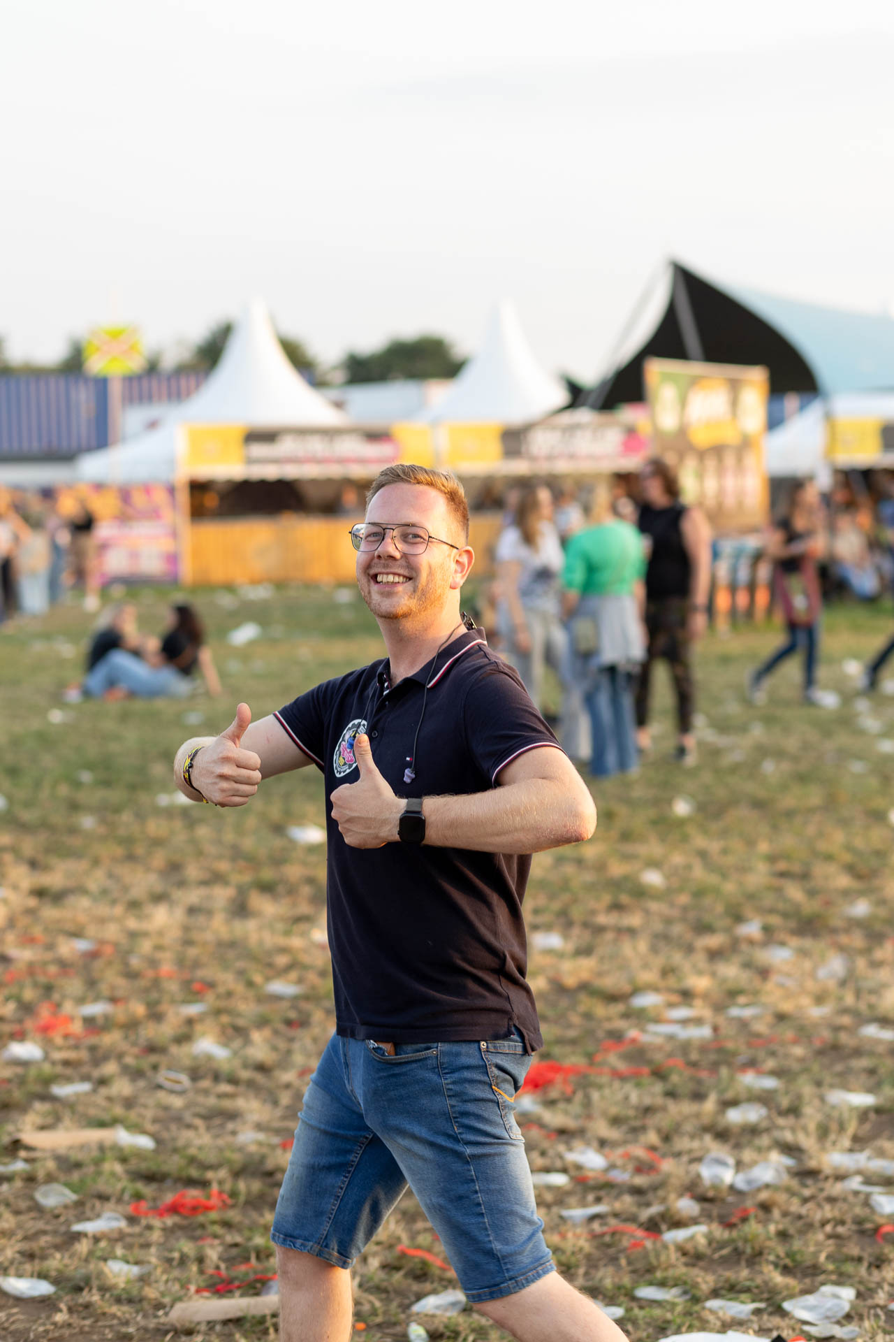 So langsam machen wir uns aber wieder fertig und begeben uns zum Gelände. Ein paar Chips, dem Bezahlsystem auf dem Gelände, holen wir uns um nachher noch etwas zu essen. Hier hat man eine große Auswahl an Speisen. Von Pfannkuchen, über asiatisch bis zu Hähnchen, Pommes, Burger und Bowls, man hat die Qual der Wahl. Festival & Holland – da kommt für uns nur Pommes in Frage.