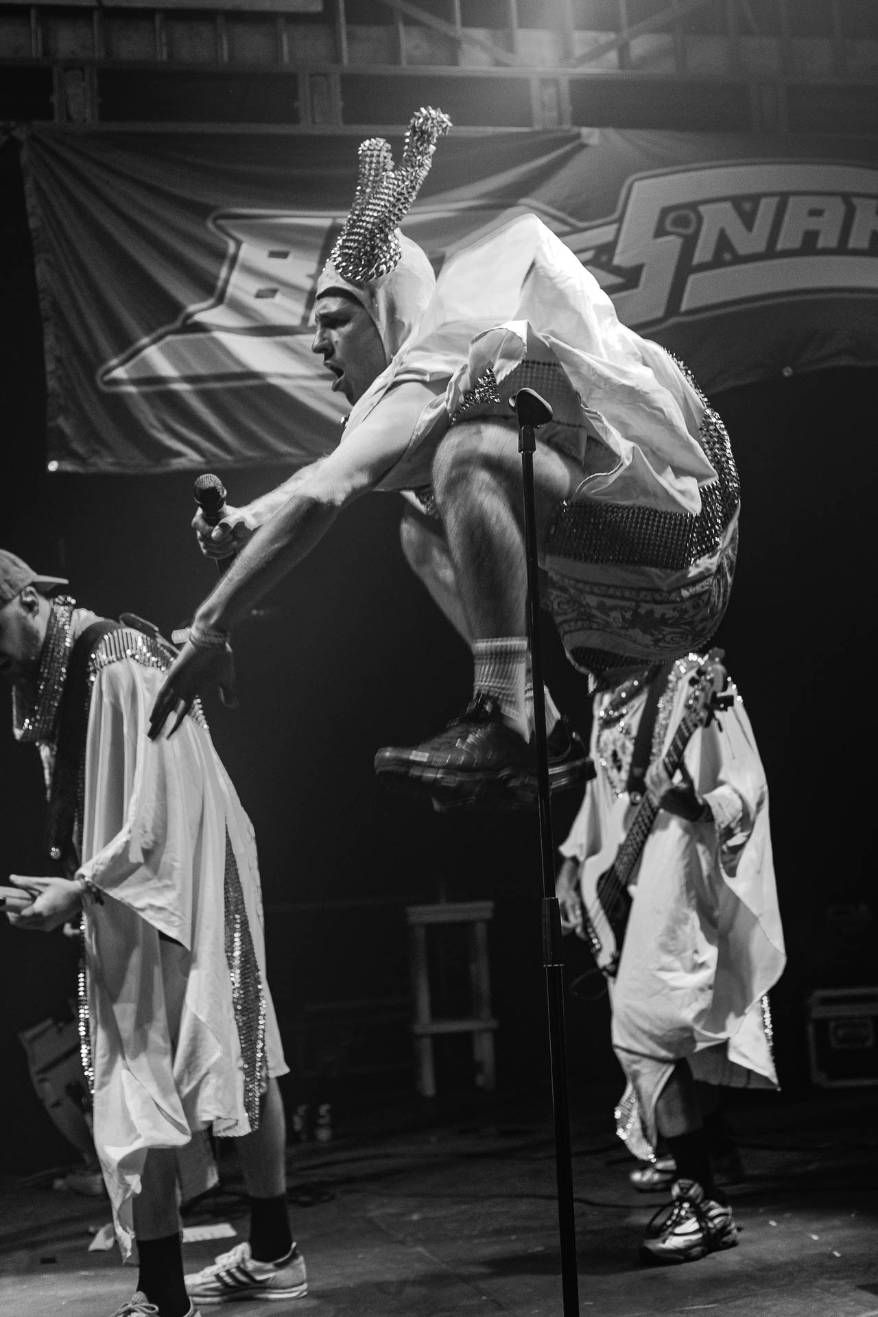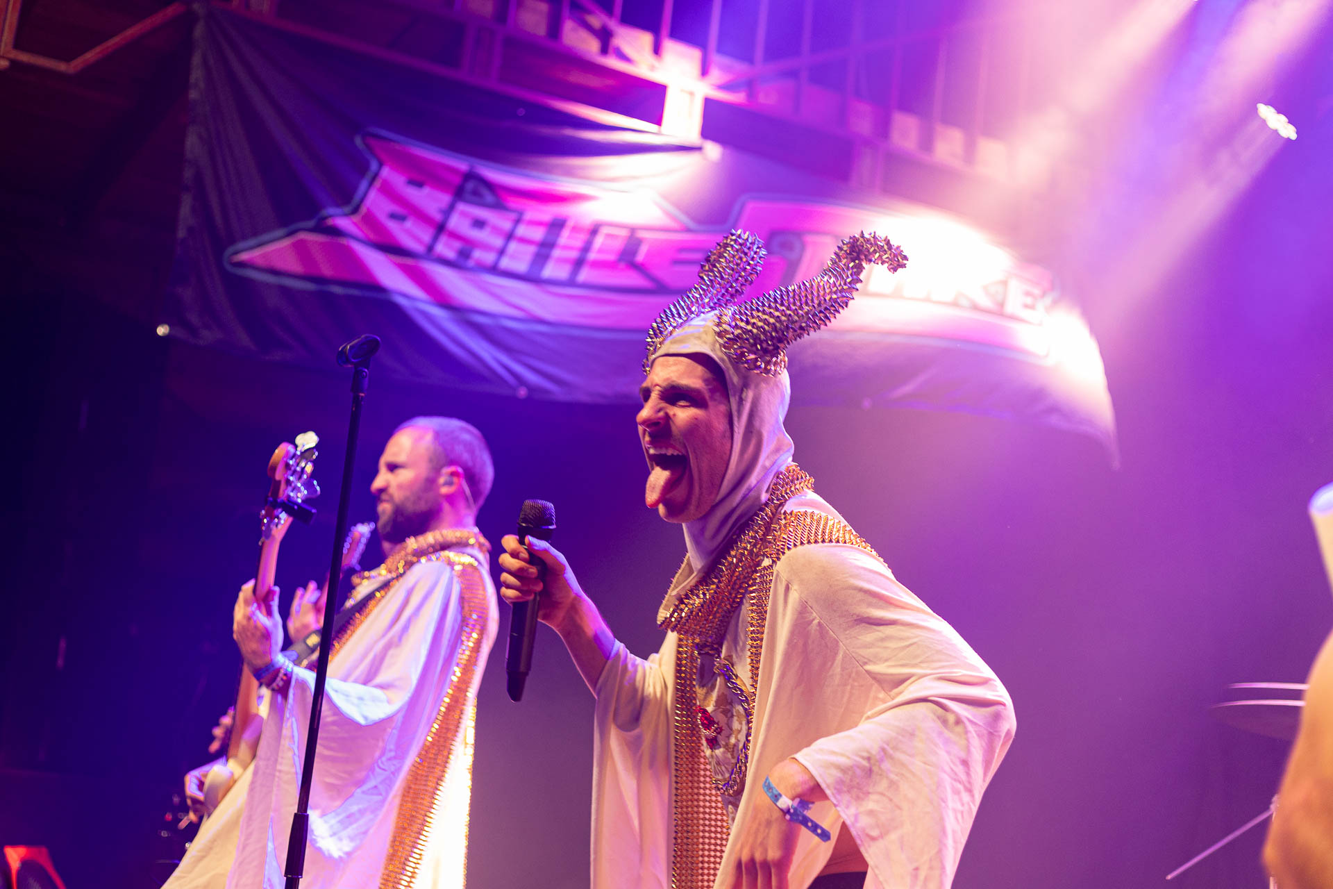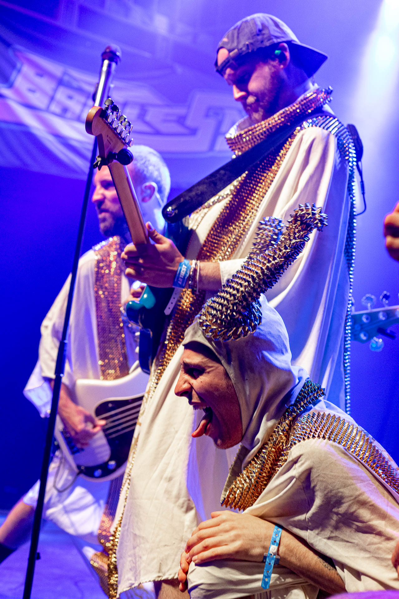 Für mich ist der Tag jedoch noch nicht zu Ende. Nach dem Auftritt von Skunk Anansie begebe ich mich rüber zum Roadhouse. Dort stehen zum zweiten Mal nach den Dune Rats Australier auf der Bühne. Theater meets Heavy-Metal mit einer guten Prise Humor. Genau das erwartet einen bei der Band Battlesnake aus Sydney.