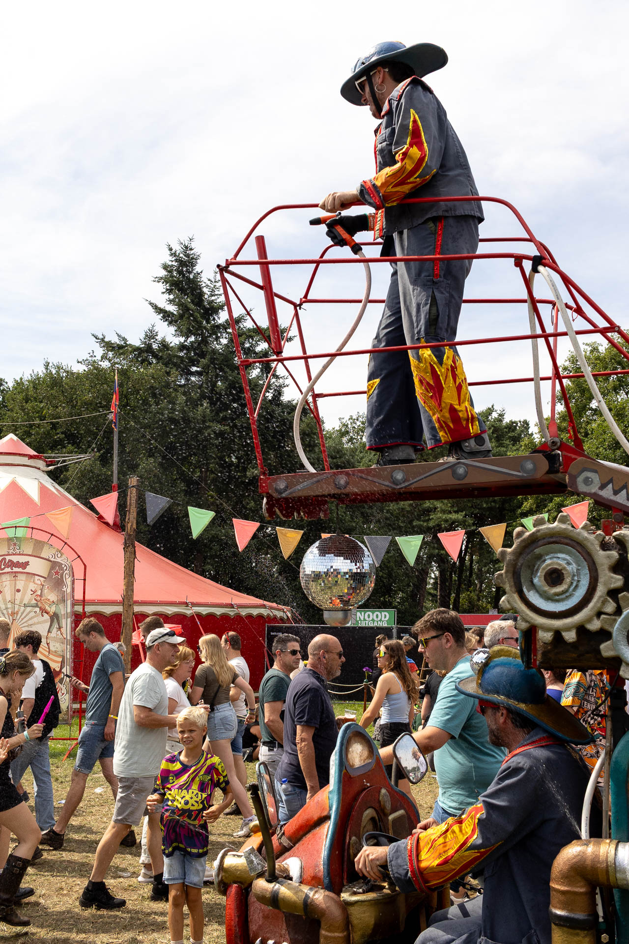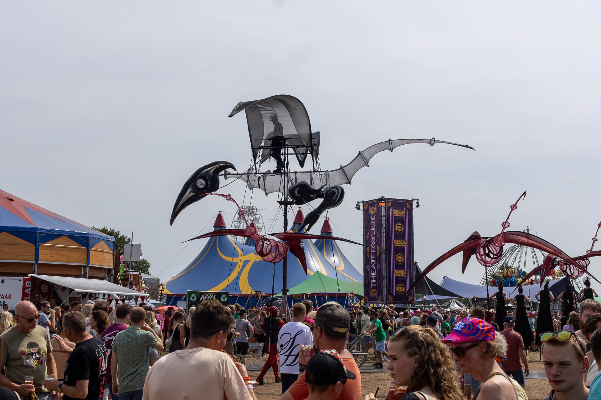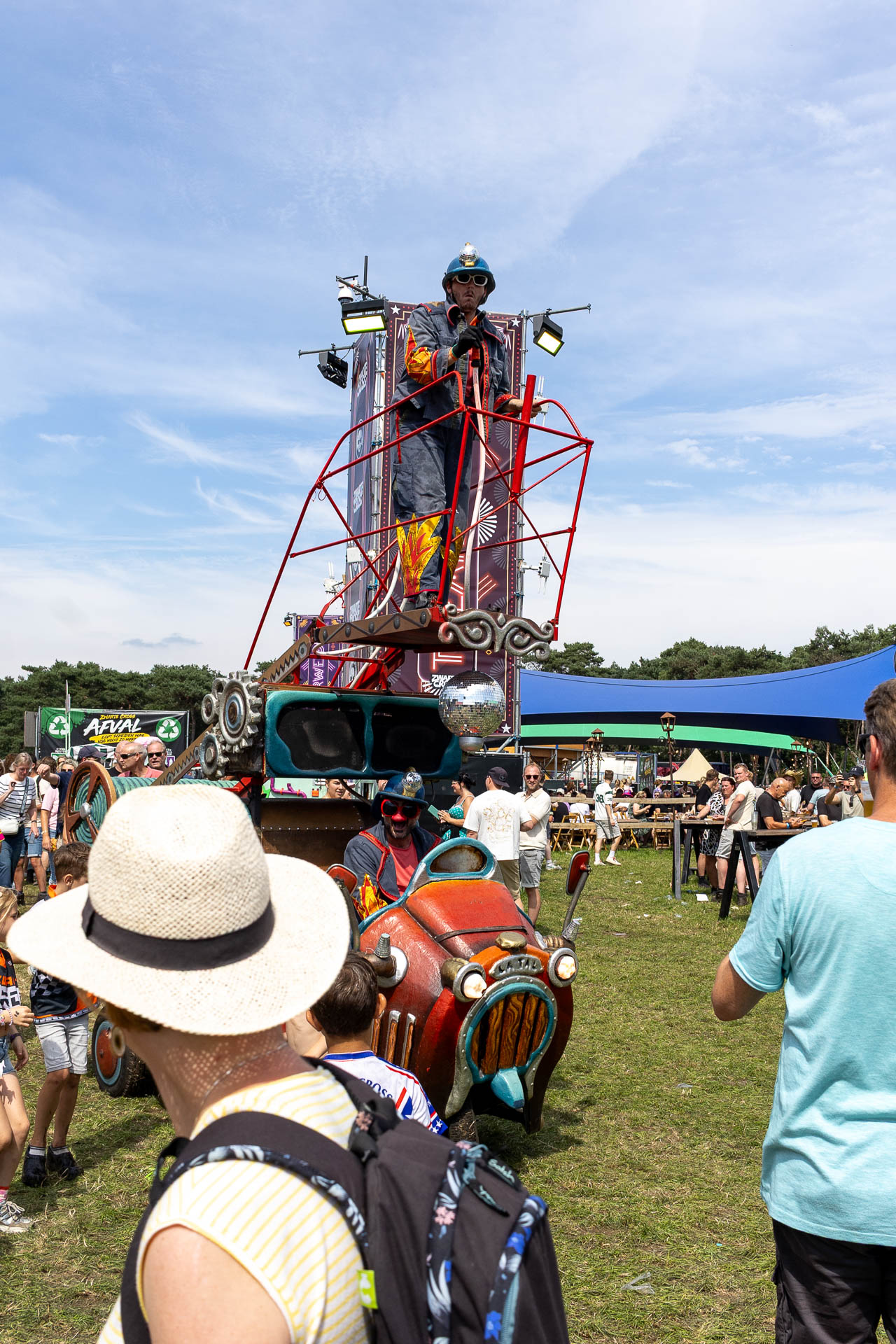 Ein erster Gang über das riesige Festivalgelände, vorbei am Megatent, wo gerade die Dutch Dubliners mit irischer Musik die Meute in Bewegung setzt, dem Discozelt, dem Dansvloer für elektronische Musik und der gewaltigen Hauptbühne mit ihren zwei Riesenrädern, geht es für mich zum Roadhouse. In einer aufgebauten Scheune schaue ich mir die erste Band des Tags an: Dune Rats. Die australische Band aus Bisbane hatte die Besucher im zweistöckigen Gebäude direkt im Griff. Energiegeladen auf und vor der Bühne.