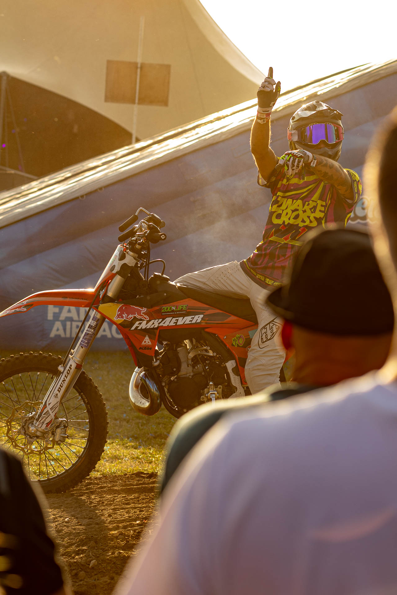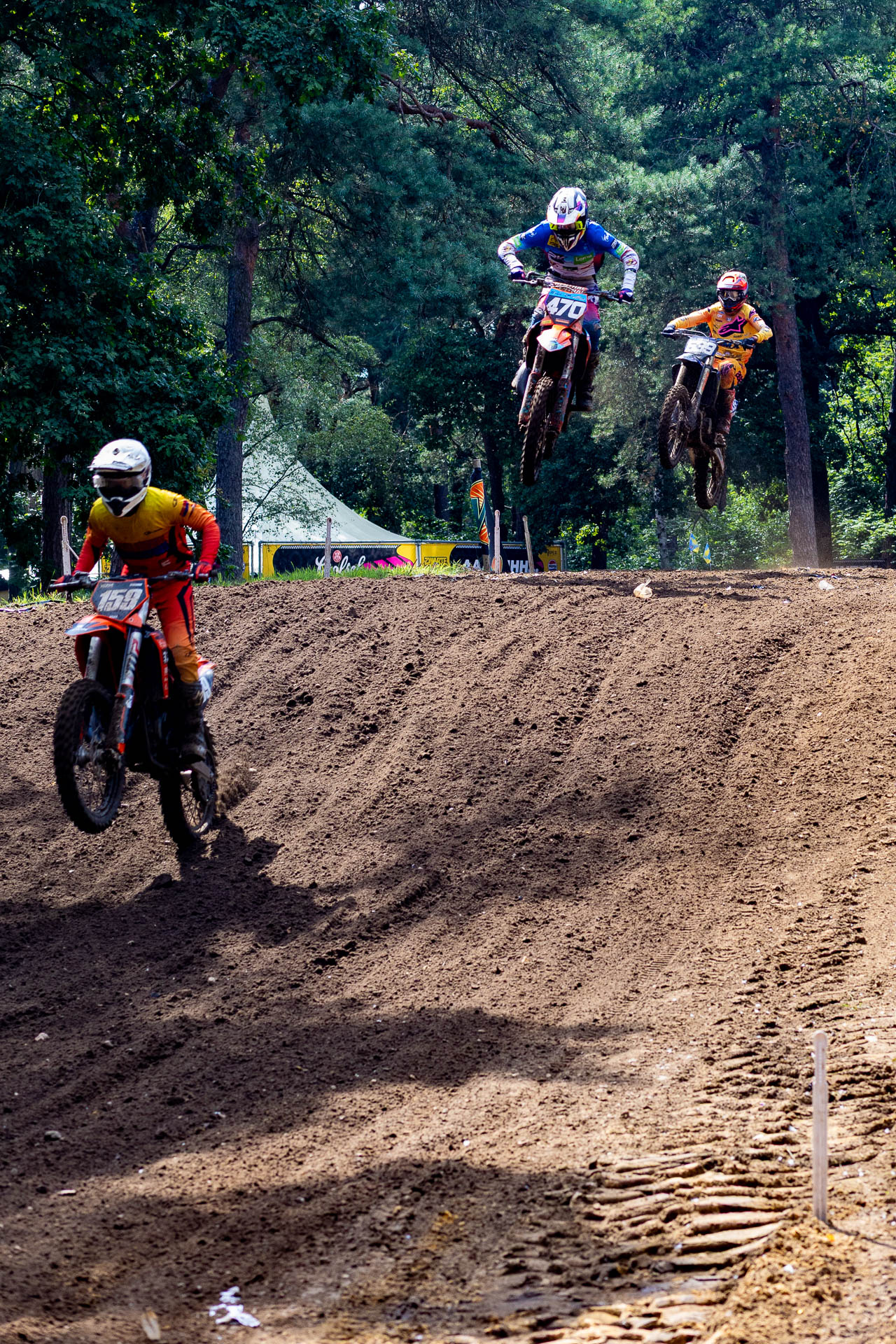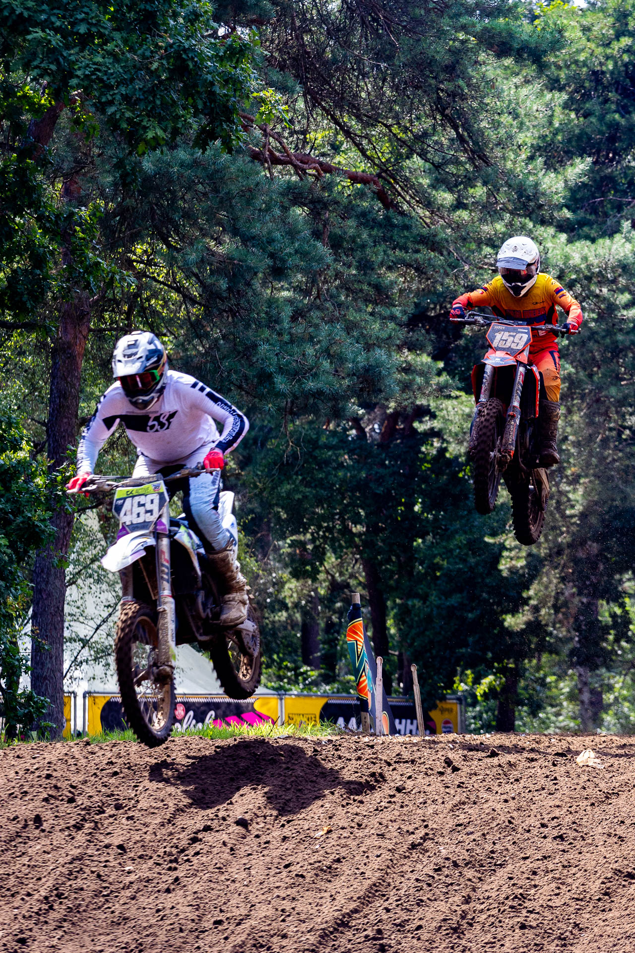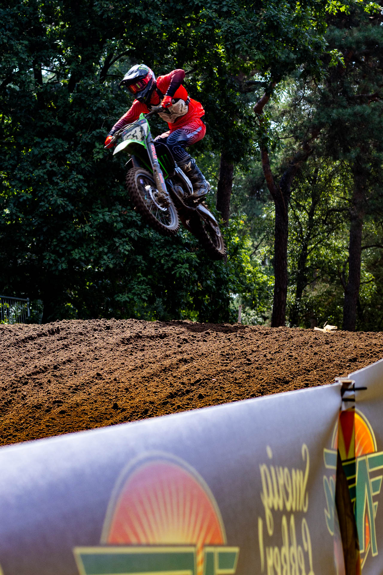 Die Crossbahn ist wie immer sehr gut besucht. Ich laufe der Strecke entlang durch den Wald, bis ich einen freien Platz am Zaun finde. Auch hier werde ich ab und zu angesprochen ob ich nicht ein Foto machen könne, was ich natürlich gerne mache. Wie in den letzten Jahren schon erlebt, braucht man sich auf der Crossbahn nicht nach den Timetable richten, der stimmt hier irgendwie nie. Eigentlich sollte jetzt eine Spaßklasse fahren. Kurze Zeit später kommen dann doch noch echte Motocross-Maschinen vorbei gedonnert. Anscheinend ist dann gerade doch noch ein Rennen gestartet.