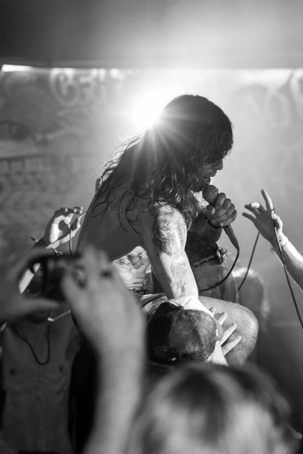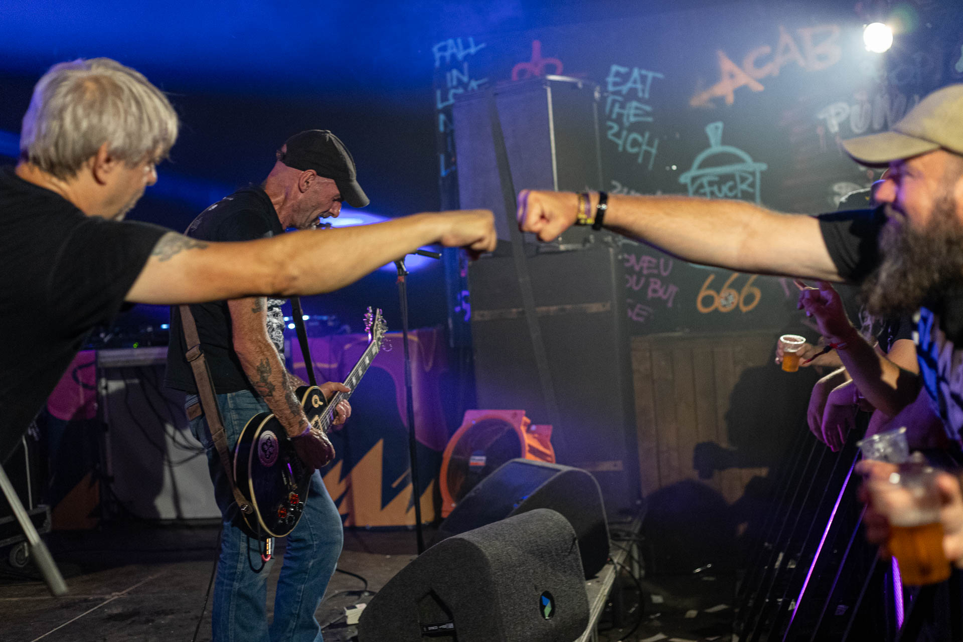 Die DJs räumen ihr Pult zur Seite und Zeke betreten die Bühne. Die Punk´N´Roll Band aus Seattle wird von manchen mit Motörhead verglichen. Früher mehr Punk – heute mit Blueseinflüssen bieten sie eine feine Bandbreite an musikalischer Gitarrenmusik. Kurze Lieder mit umso höheren Tempo werden hier durch das Zelt geknallt. Und das Publikum dankt es ihnen und bringt die Energie in diesem Raum zum überkochen.