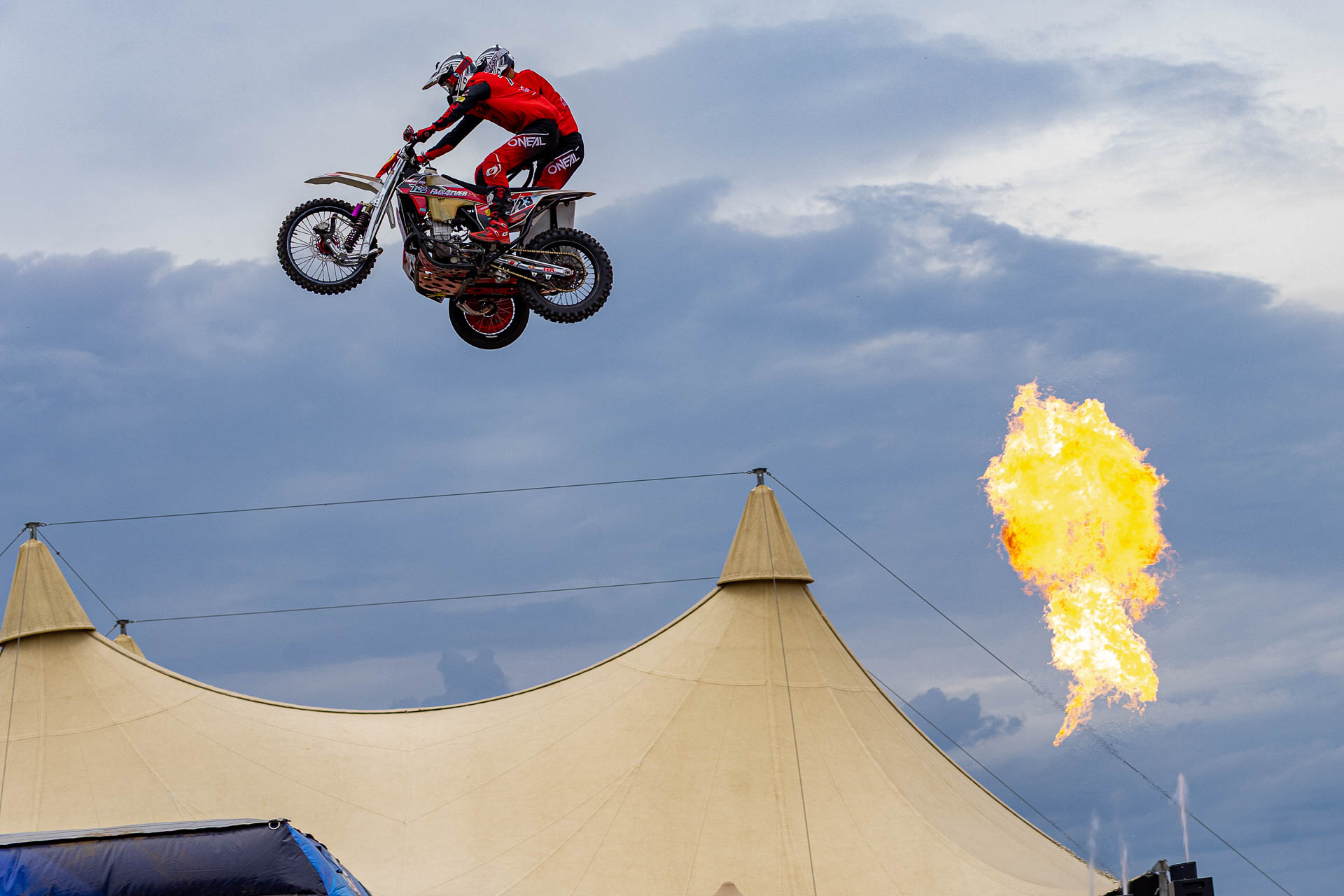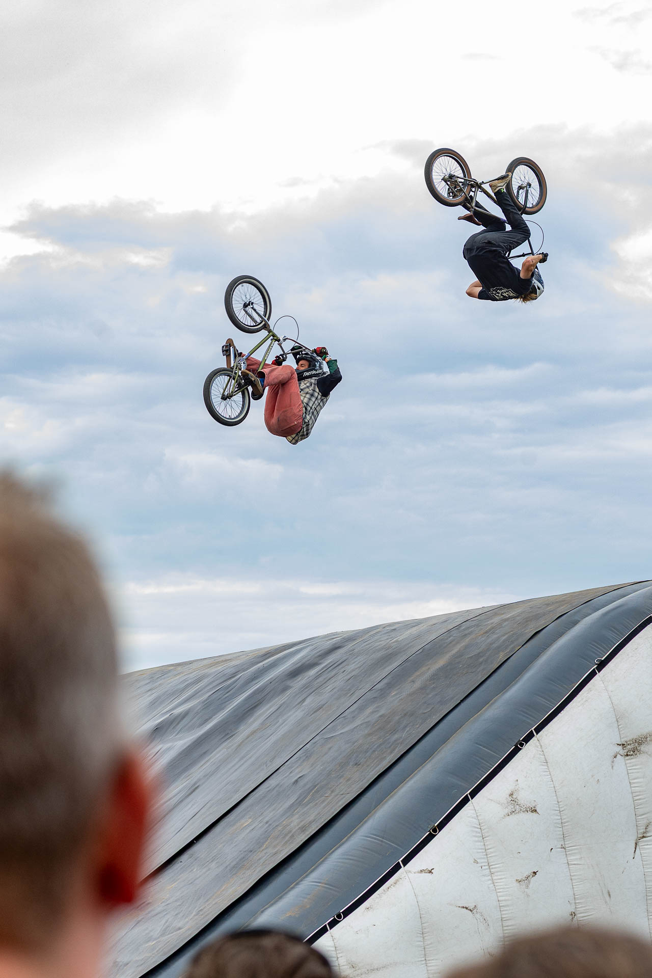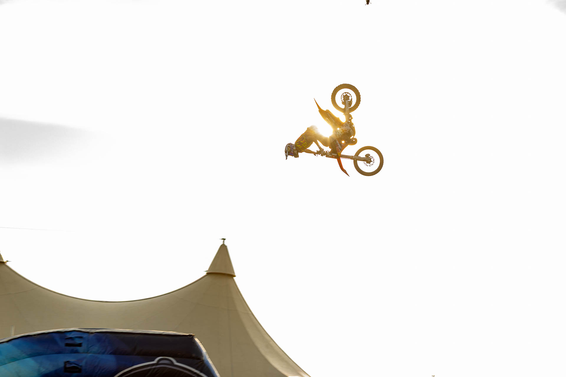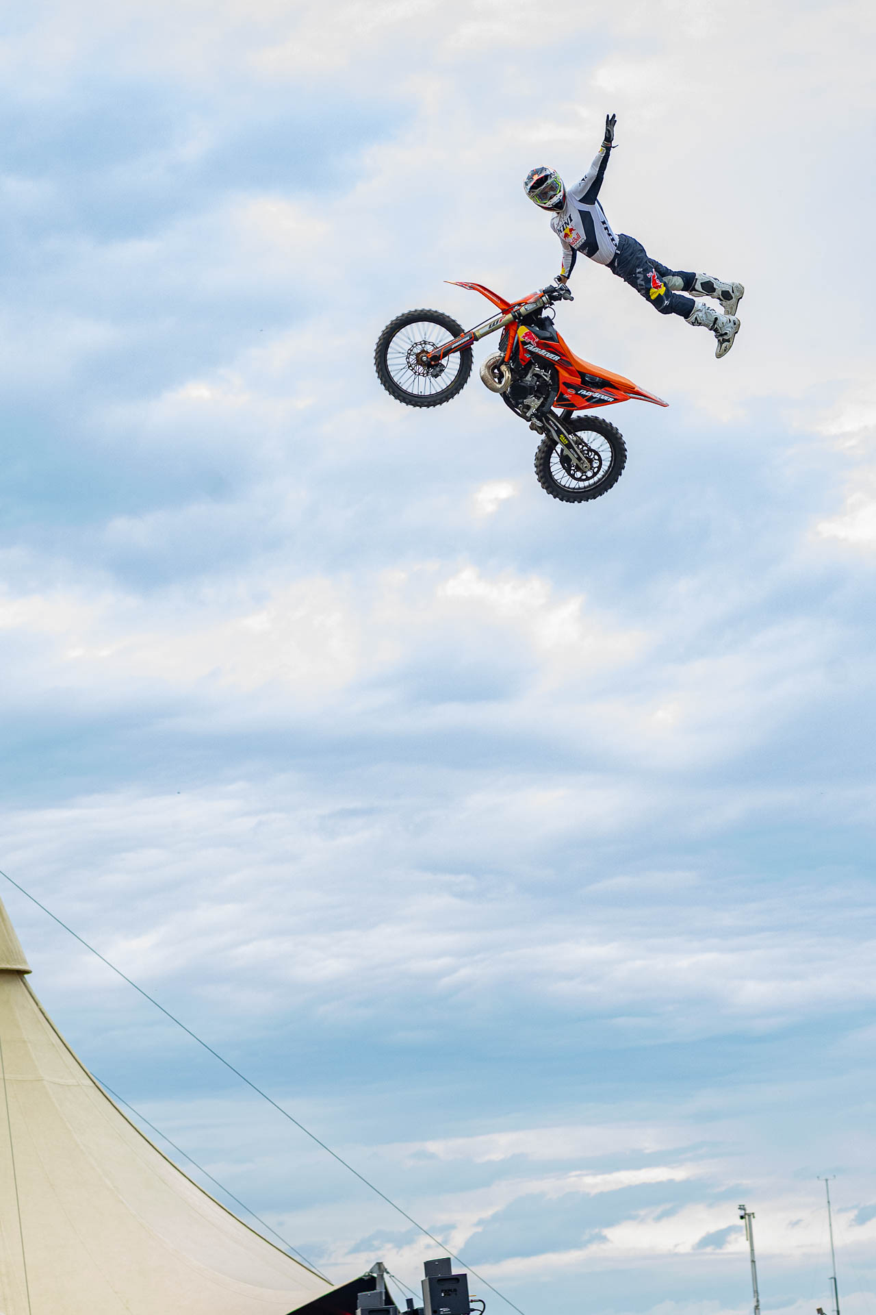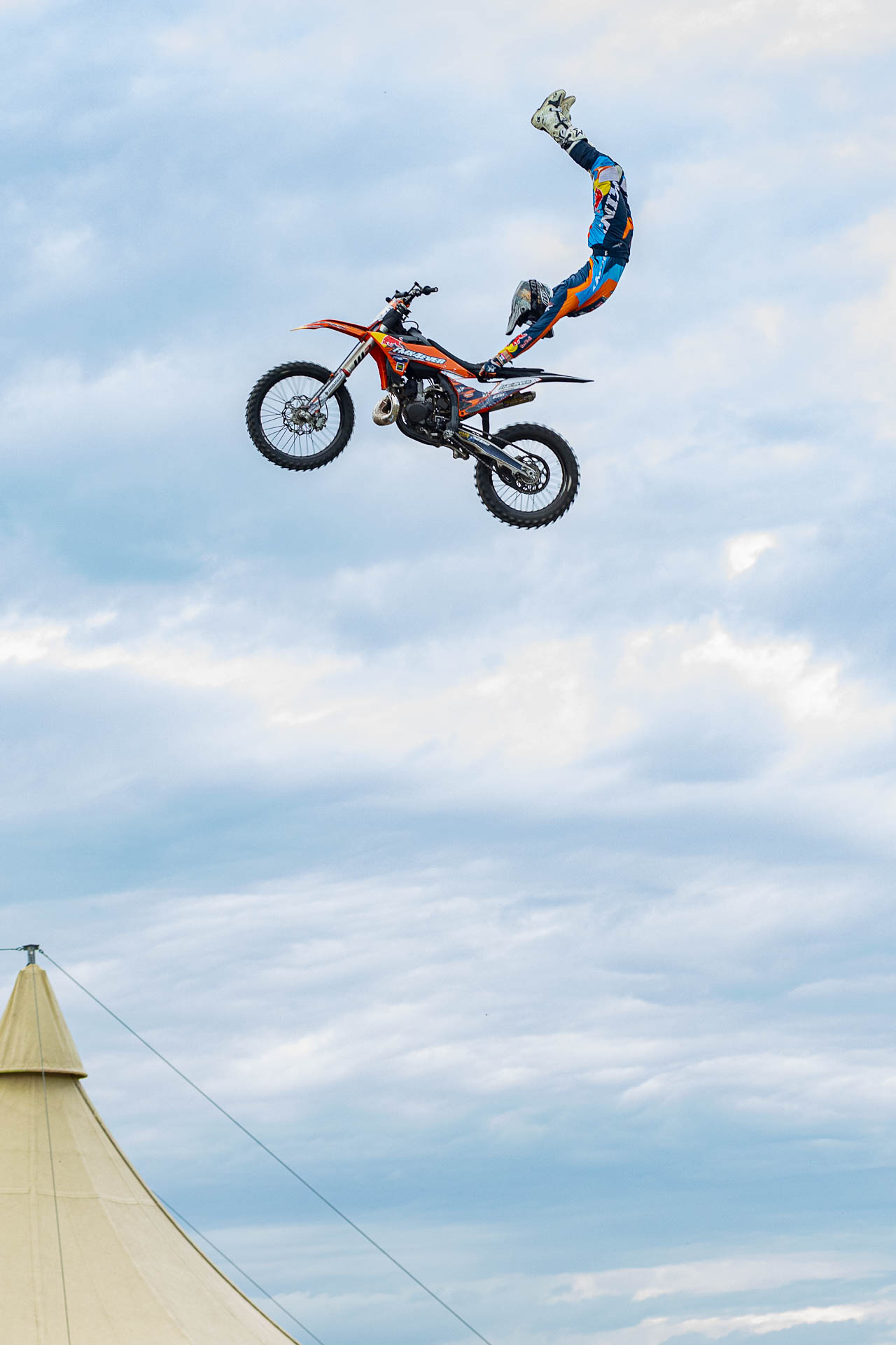 Und erneut bieten die Sportler eine einzigartige Show. Vom hohen Turm nehmen die Skater und BMX Fahrer über eine Rampe Anlauf um sich am Ende in alle Richtungen zu drehen. Auch die Motocrosser zeigen wieder jegliche Formen im Himmel.
