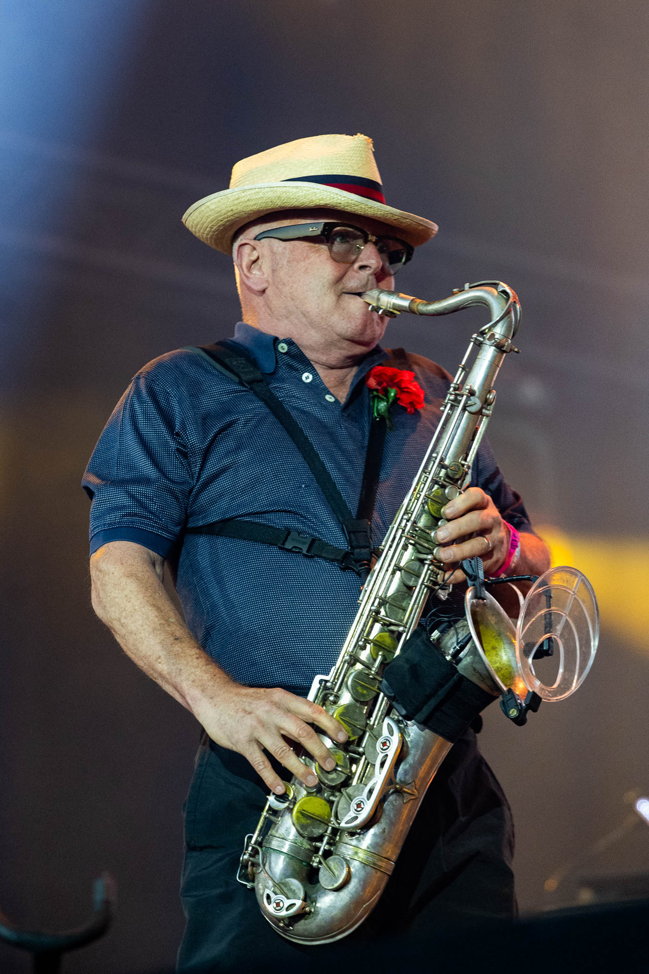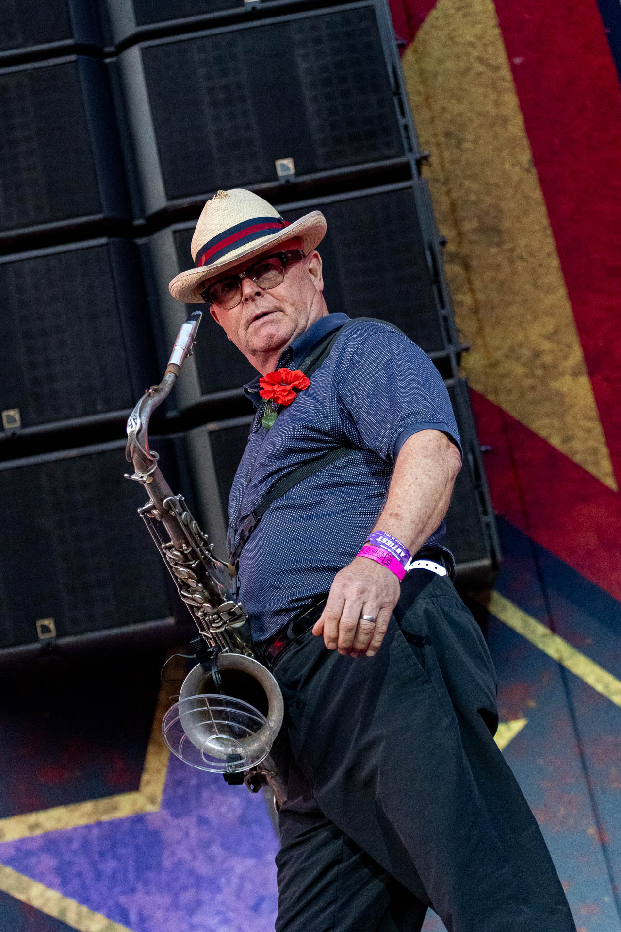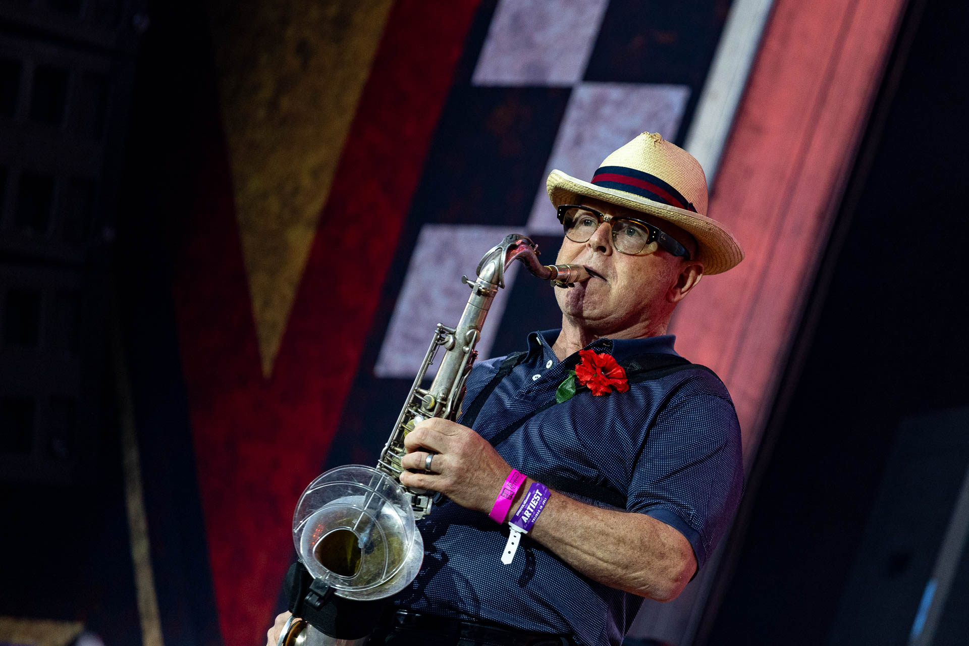 Auf der Hauptbühne, dem Hoofdpodium, kündigen sich Legenden des Ska an. Madness aus London, bereits 1976 gegründet, sind wohl mit die bekanntesten britischen Ska-Band. Große Bekanntheit hat die Band wohl mit dem Hit „Our House“ erlangt, aber auch jede Menge anderer Hits wie „It Must Be Love“ und „House Of Fun“ werden hier und heute direkt nach einander gespielt. Die Band hat sichtlich Spaß am musizieren und nicht nur Saxophonist Lee Thompson liebt die Interaktion mit dem Publikum und den Fotografen. Ein wenig sarkastisch aber immer freundlich. Ich habe mich sehr auf diese Band gefreut und wurde nicht enttäuscht.