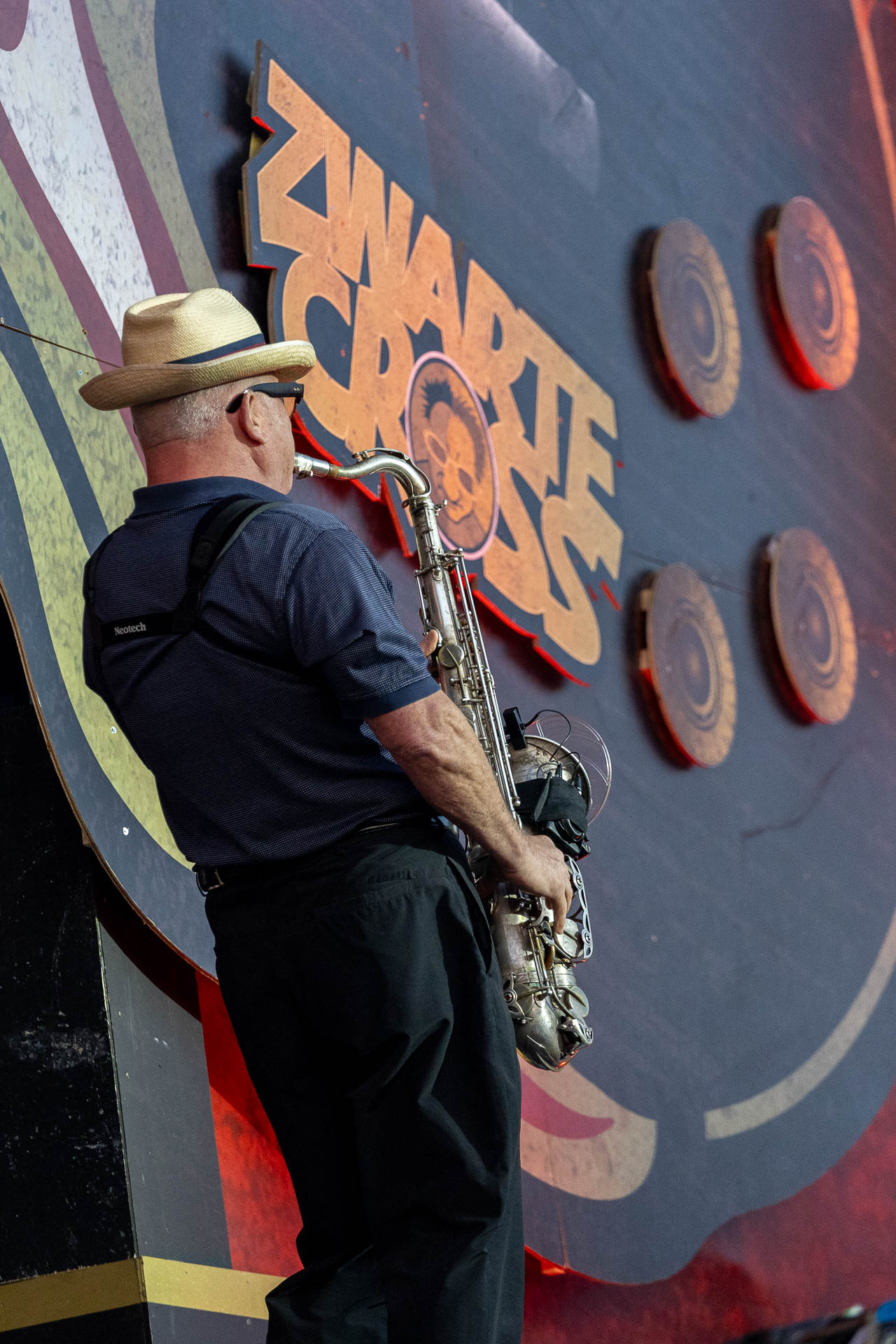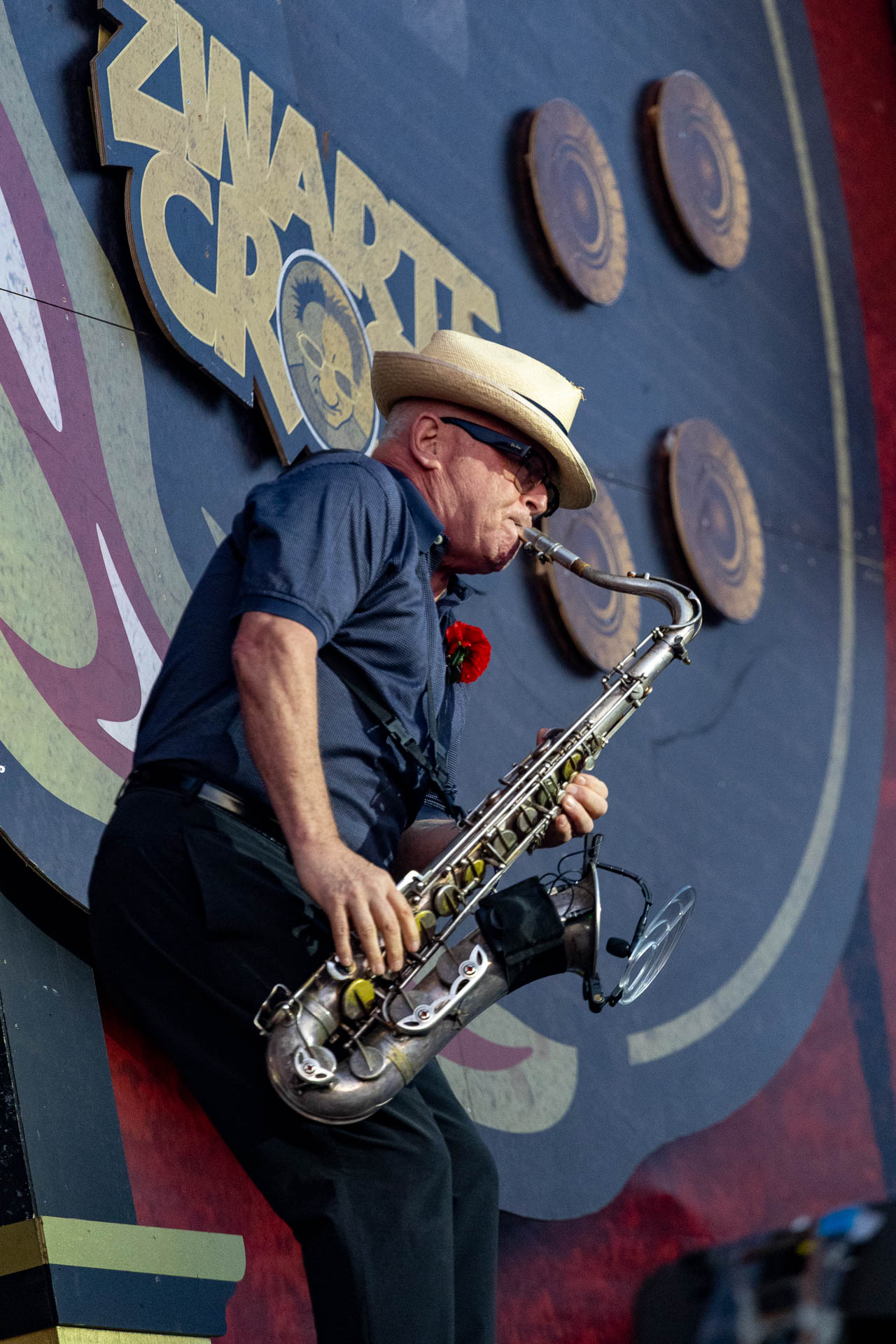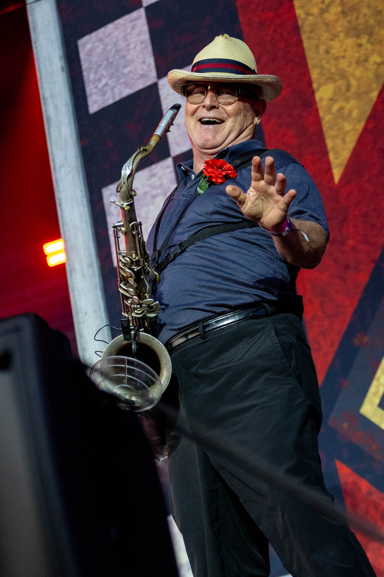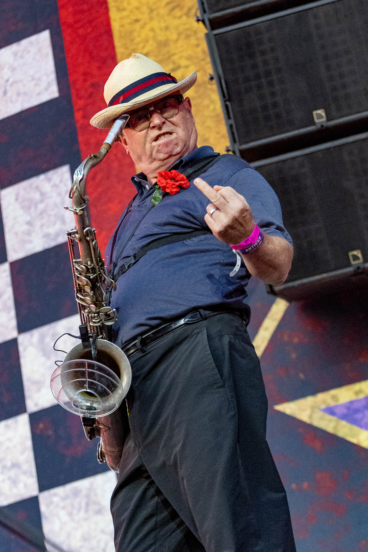 Auf der Hauptbühne, dem Hoofdpodium, kündigen sich Legenden des Ska an. Madness aus London, bereits 1976 gegründet, sind wohl mit die bekanntesten britischen Ska-Band. Große Bekanntheit hat die Band wohl mit dem Hit „Our House“ erlangt, aber auch jede Menge anderer Hits wie „It Must Be Love“ und „House Of Fun“ werden hier und heute direkt nach einander gespielt. Die Band hat sichtlich Spaß am musizieren und nicht nur Saxophonist Lee Thompson liebt die Interaktion mit dem Publikum und den Fotografen. Ein wenig sarkastisch aber immer freundlich. Ich habe mich sehr auf diese Band gefreut und wurde nicht enttäuscht.