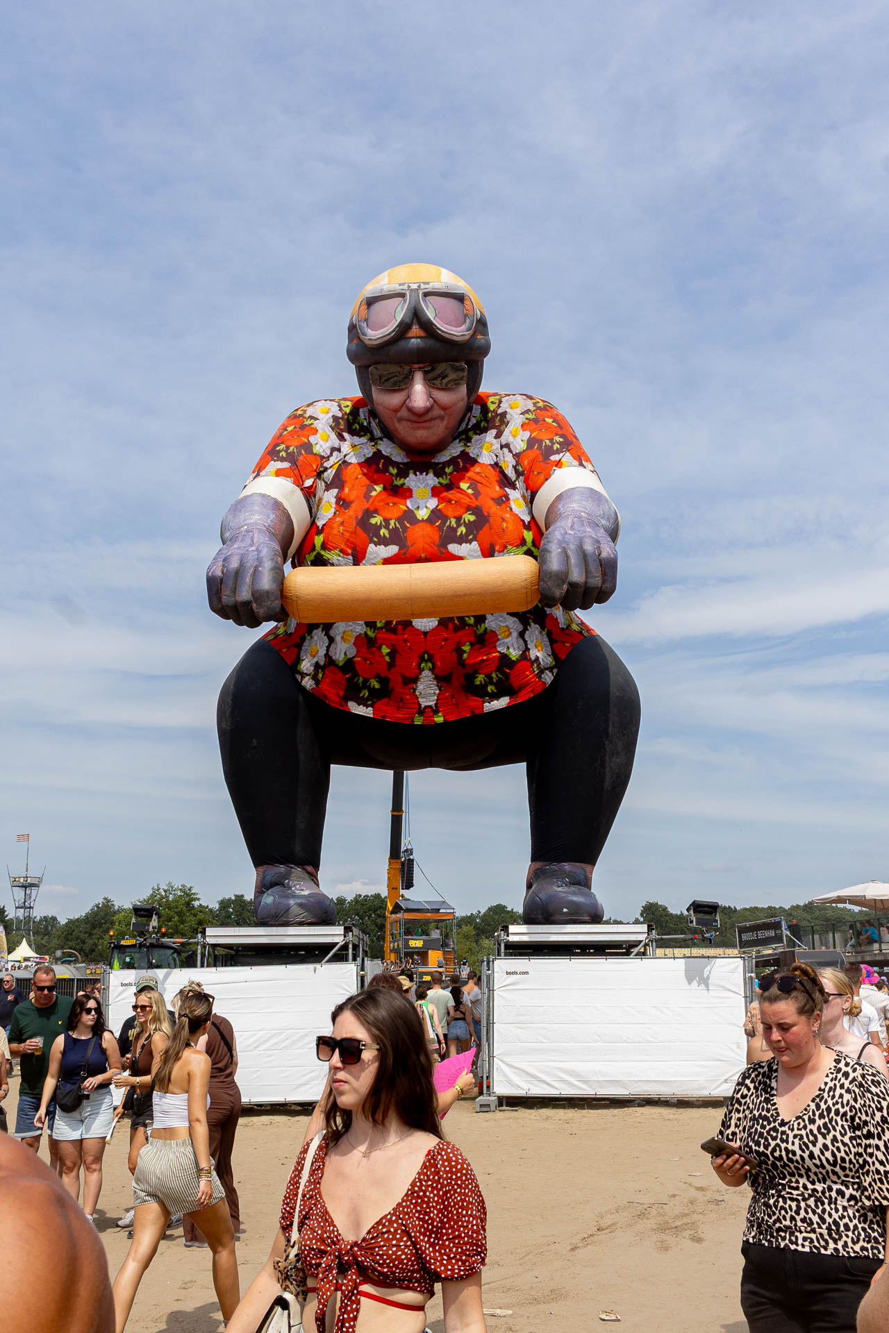 Jetzt aber weiter über das Gelände. Vom Strand über die Brücke zurück zeige ich Julia den Bereich mit den Bühnen Roadhouse und The Bayou sowie ein Stück weiter der Noaberhood. Auf dem Weg zur Crossbahn darf ein Foto von der riesigen aufblasbaren Rikie natürlich nicht fehlen.