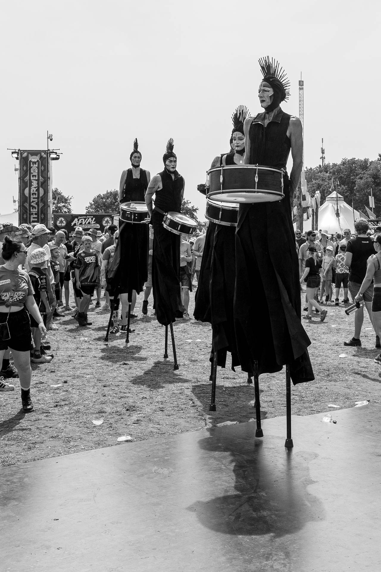 Die Crossbahn ist nach wie vor sehr gut besucht. Sämtliche Hügel und Ränge sind voller Menschen, die auf das nächste Spektakel warten. Wir laufen entlang der Strecke und langsam in Richtung Hauptbühne. Auf der Theaterweide kommen uns noch Fußgruppen entgegen und in jeder Ecke wird etwas anderes aufgeführt.