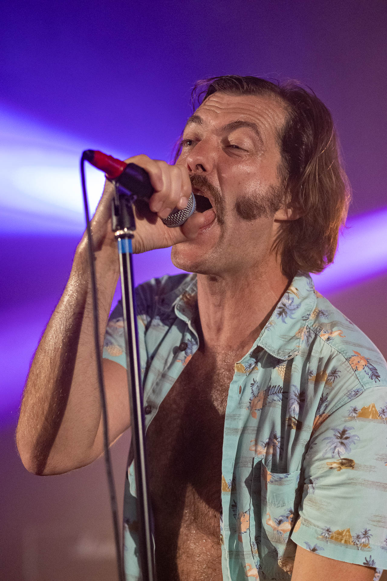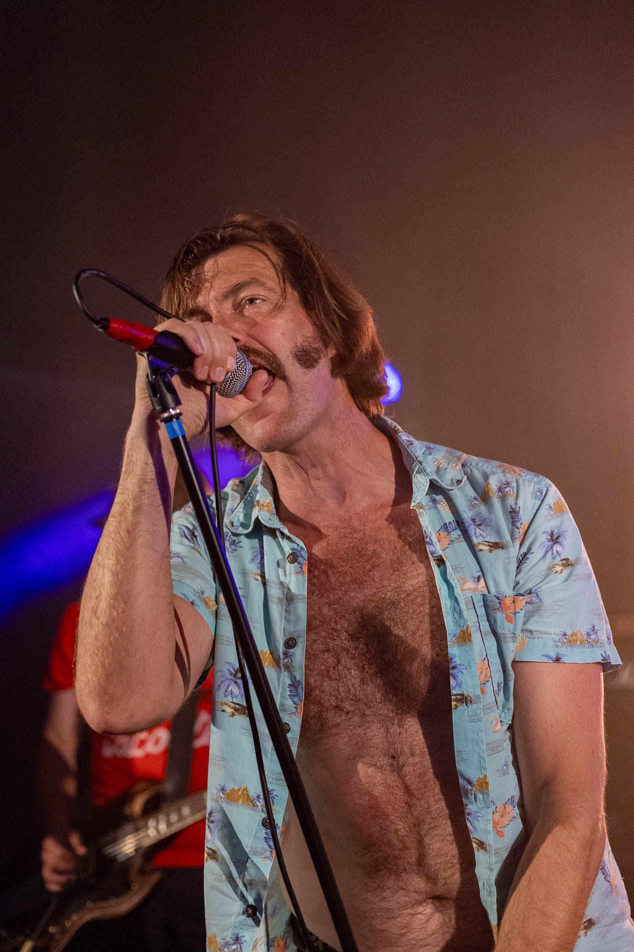 Das Roadhouse ist randvoll gefüllt. Alle warten auf diese einzigartige Darbietung. Ich weiß nicht genau was in Australien so los ist, aber in letzter Zeit kommen eine Menge Bands aus Down Under, die für ihre außergöhnlichen und energischen Livedarbietungen bekannt sind. Spontan fallen mir da neben den beiden hier auftretenden Bands Dune Rats und Battlesnake noch Bands wie Clowns, Private Function, Amyl and the Sniffers oder The Chats ein.